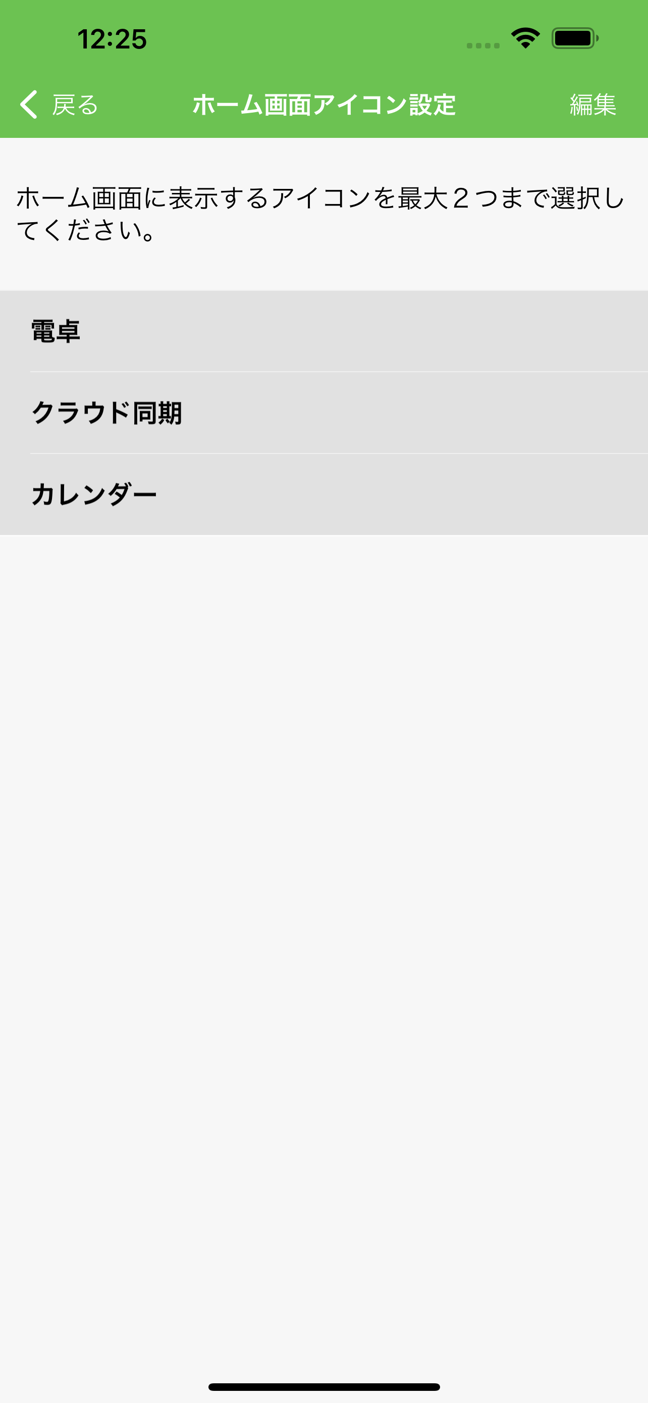 ホーム画面アイコンの設定方法 「設定」について 2023/01/05 1.ホーム画面の左上にある設定ボタン(歯車アイコン)を押します。 2.設定の中にある表示設定のボタンを押します。 3.ホーム画面アイコンのボタンを押します。 4.ホーム画面に表示したいアイコンを2つまで選ぶことができます。 5.選択したアイコンはホーム画面の中央左端に表示されます。(以下は、「電卓」「クラウド同期」を選択した場合の表示される画面です)