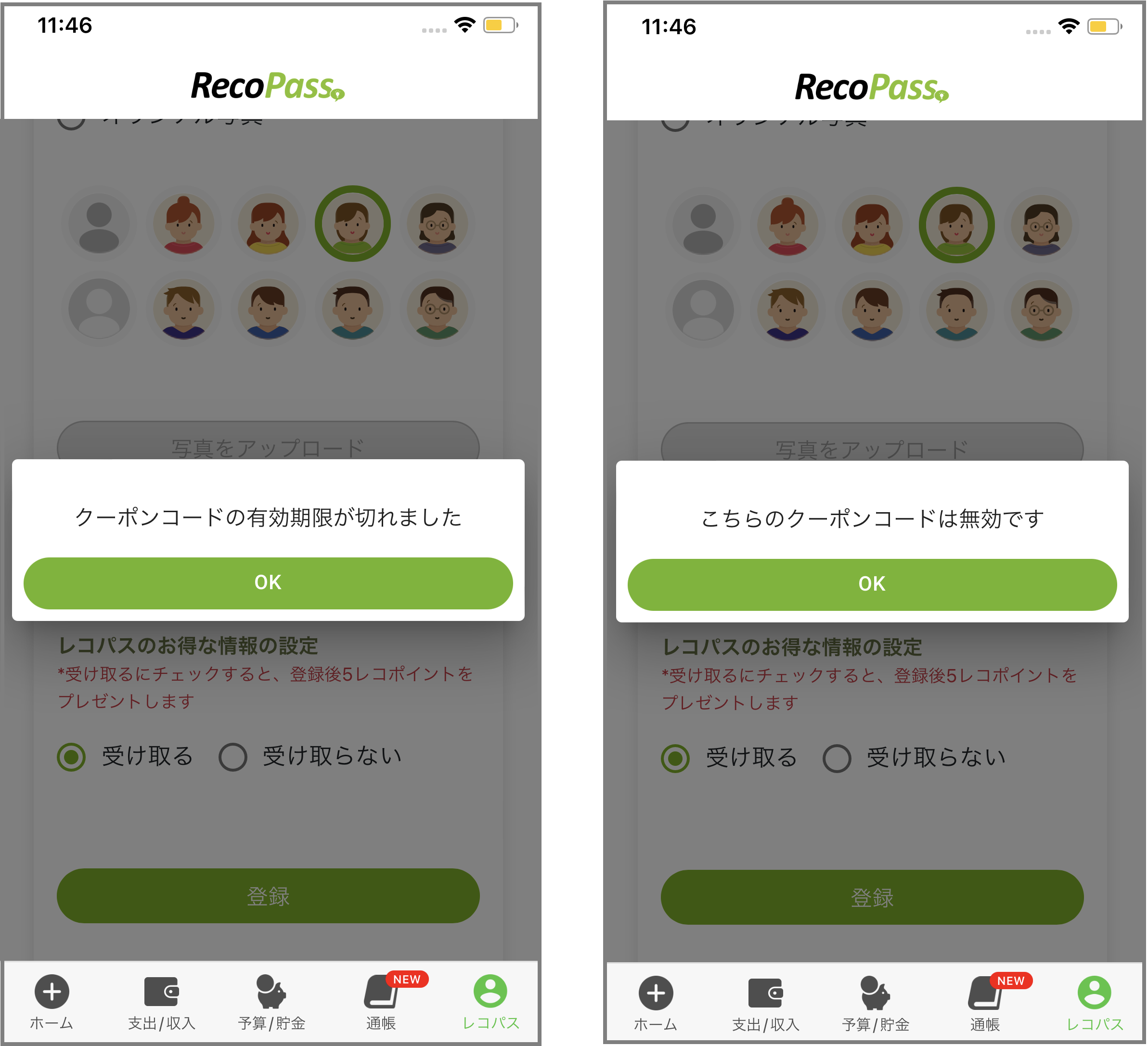 ※何もメッセージが表示されない場合は、クーポンコードが無効になっている場合がございますので、おカネレコ事務局(feedback@smart-idea.jp)までご連絡いただけますようお願いいたします。