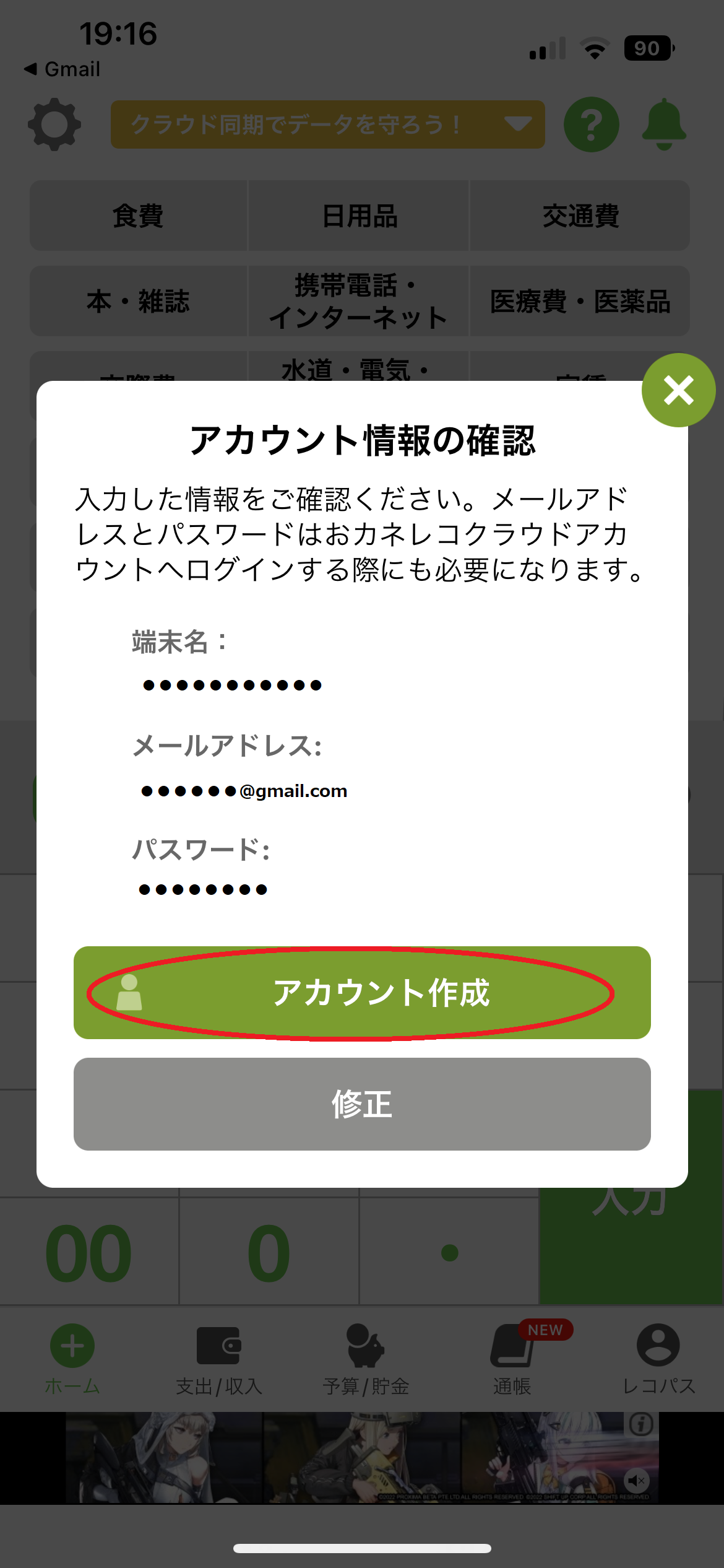 12.「アカウント作成」を押します。