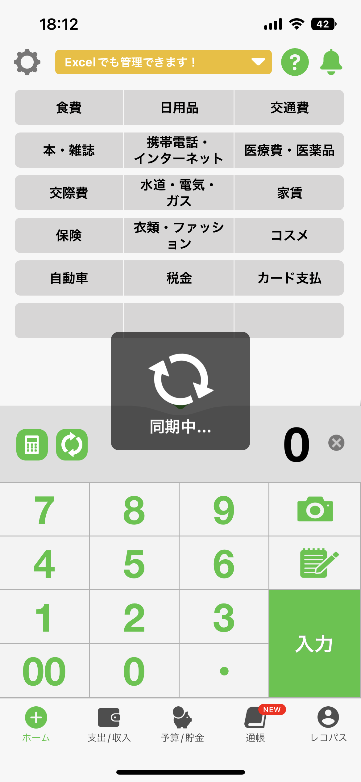 1.おカネレコを起動し、入力画面左上の設定(歯車アイコン)を押します。