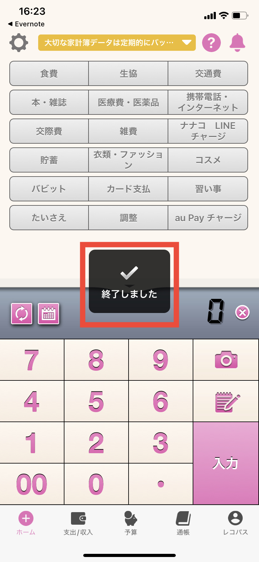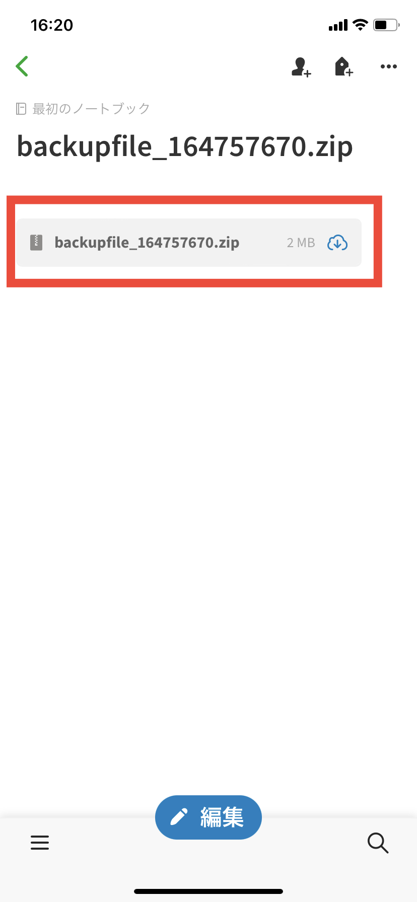 2. Evernoteアプリを起動し、おカネレコのバックアップファイルを選択します。