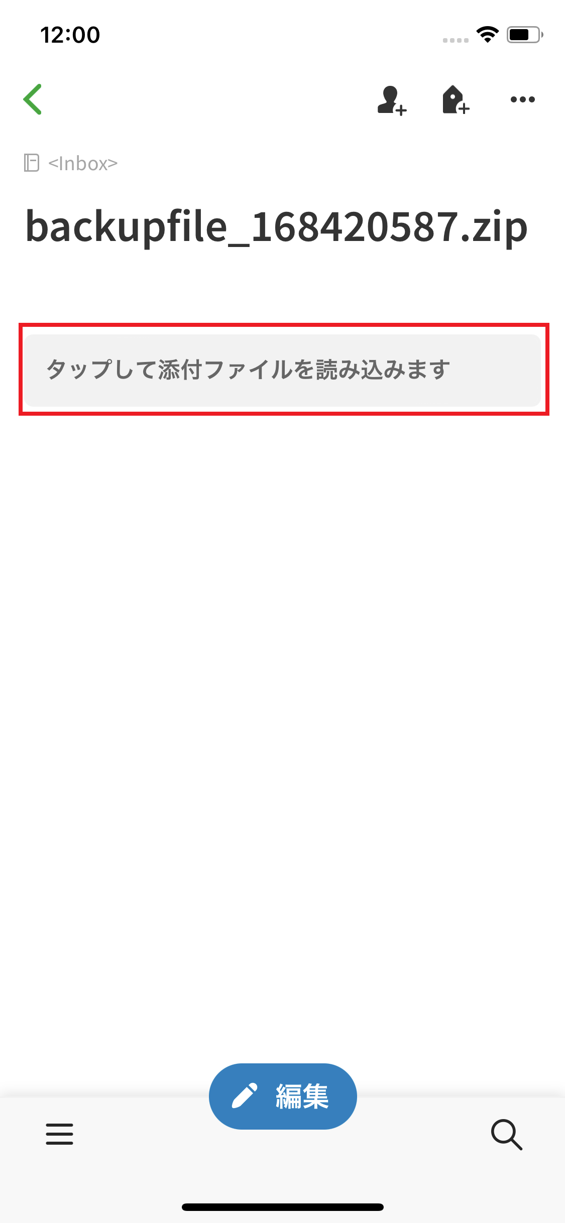 ※上記のようにファイル名が表示されていない場合は、「タップして添付ファイルを読み込みます」を押してください。