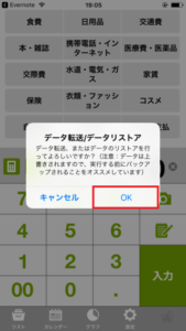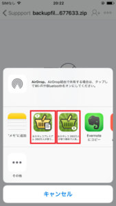 2. Evernoteアプリを起動し、おカネレコのバックアップファイルを選択します。