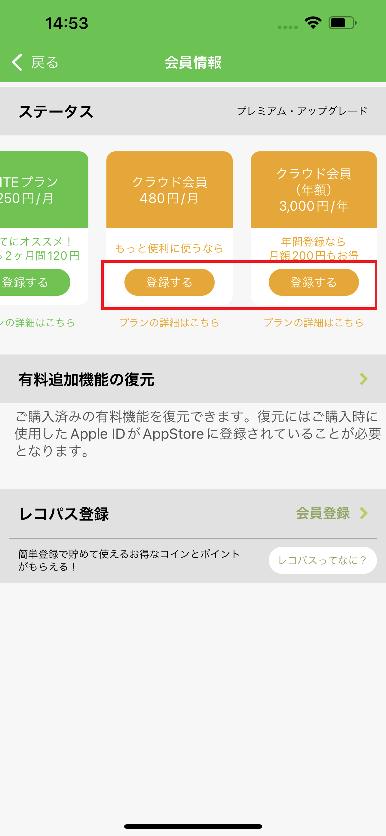①プレミアム会員(旧:クラウド会員)プランへの再加入手順