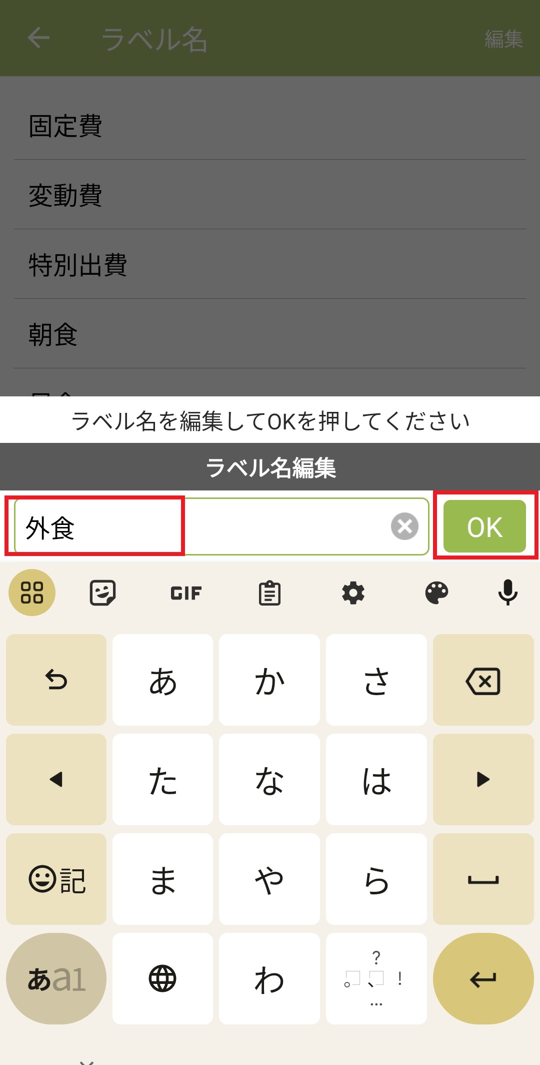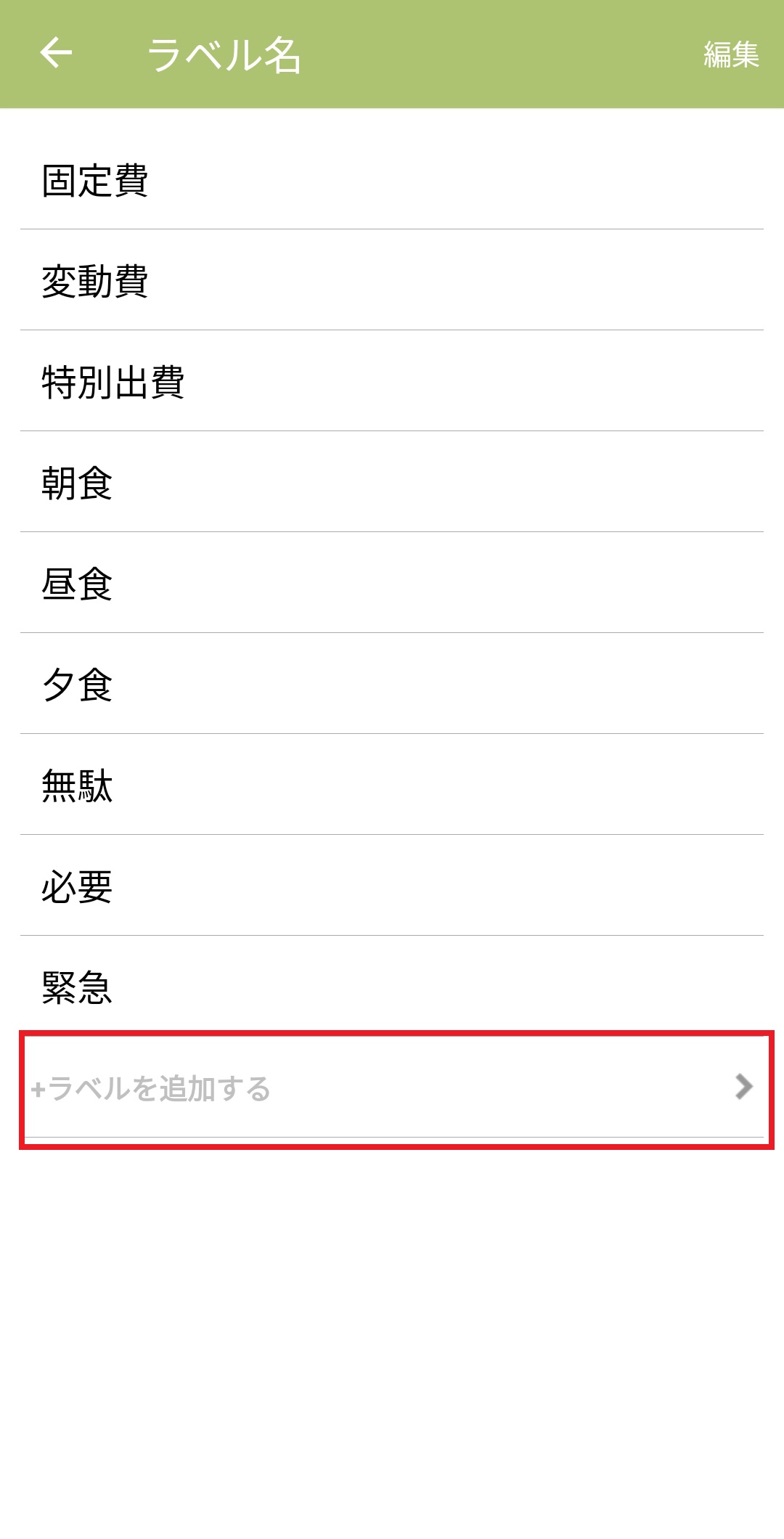 ラベルの新規追加 Android版 2024/06/24 1.おカネレコのホーム画面下の「設定」ボタンを押します。 2.「集計/記録情報設定」を押します。 3.「ラベル設定」を押します。 4.「ラベルリスト」を押します。 5.一番下の「+ラベルを追加する」を押します。 6.ラベル名を入力して「OK」を押します。 7.ラベルが追加されます。