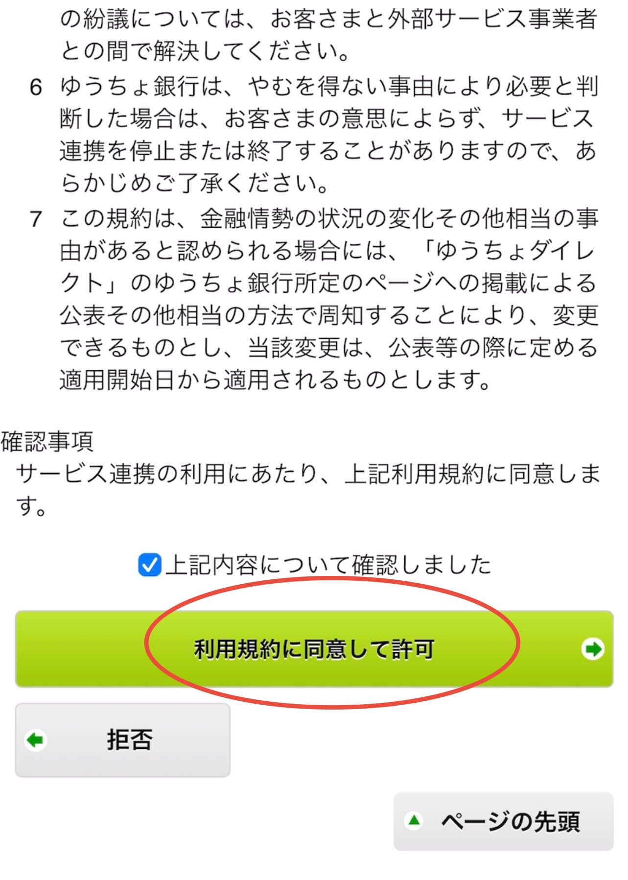 12.ログイン後「サービス連携に関する同意」が表示されますので、確認の上、問題ない場合は、「利用規定に同意して許可」を押します。