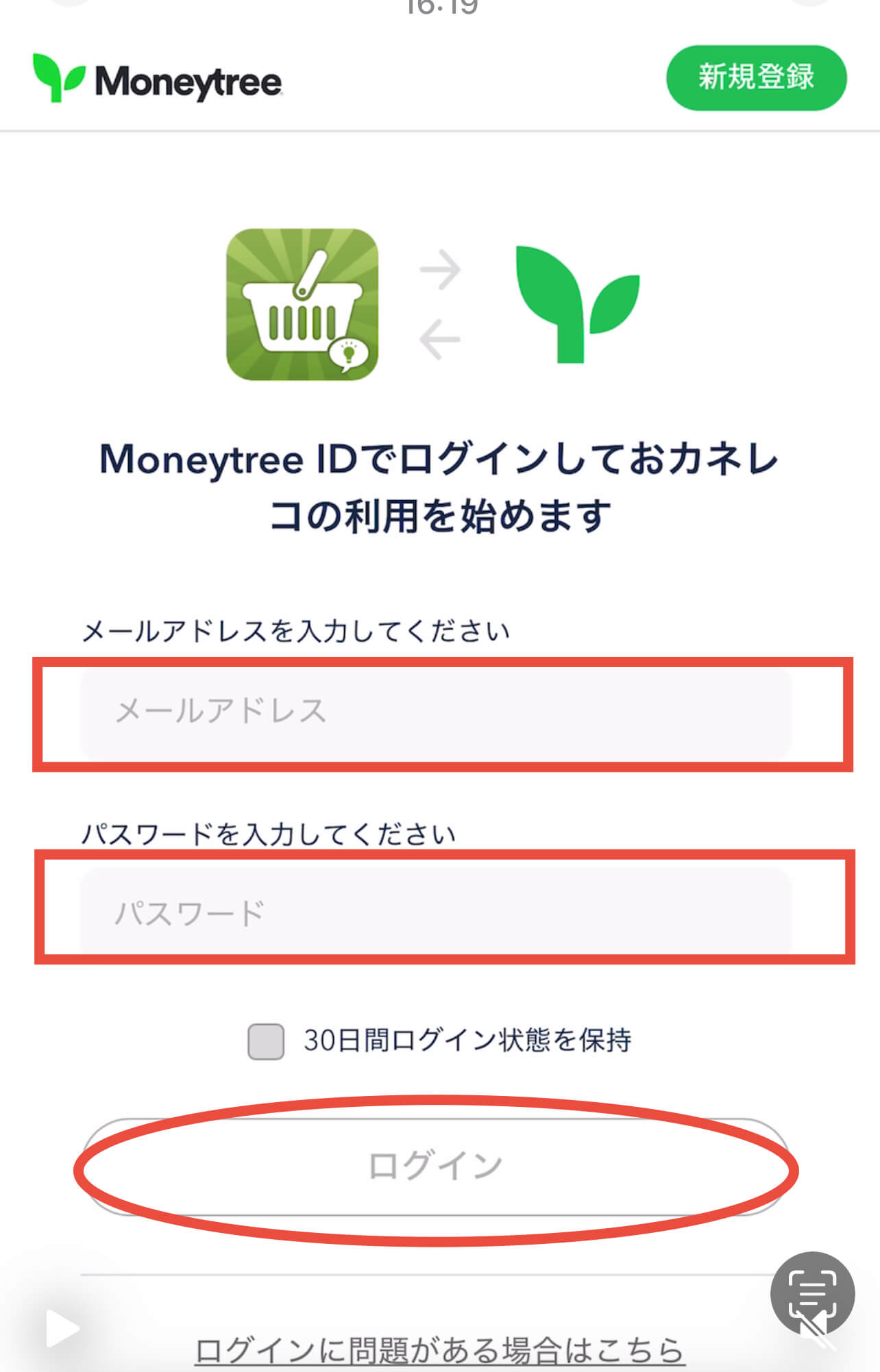 ※事前におカネレコのID(メールアドレス)とパスワードをご準備ください。
