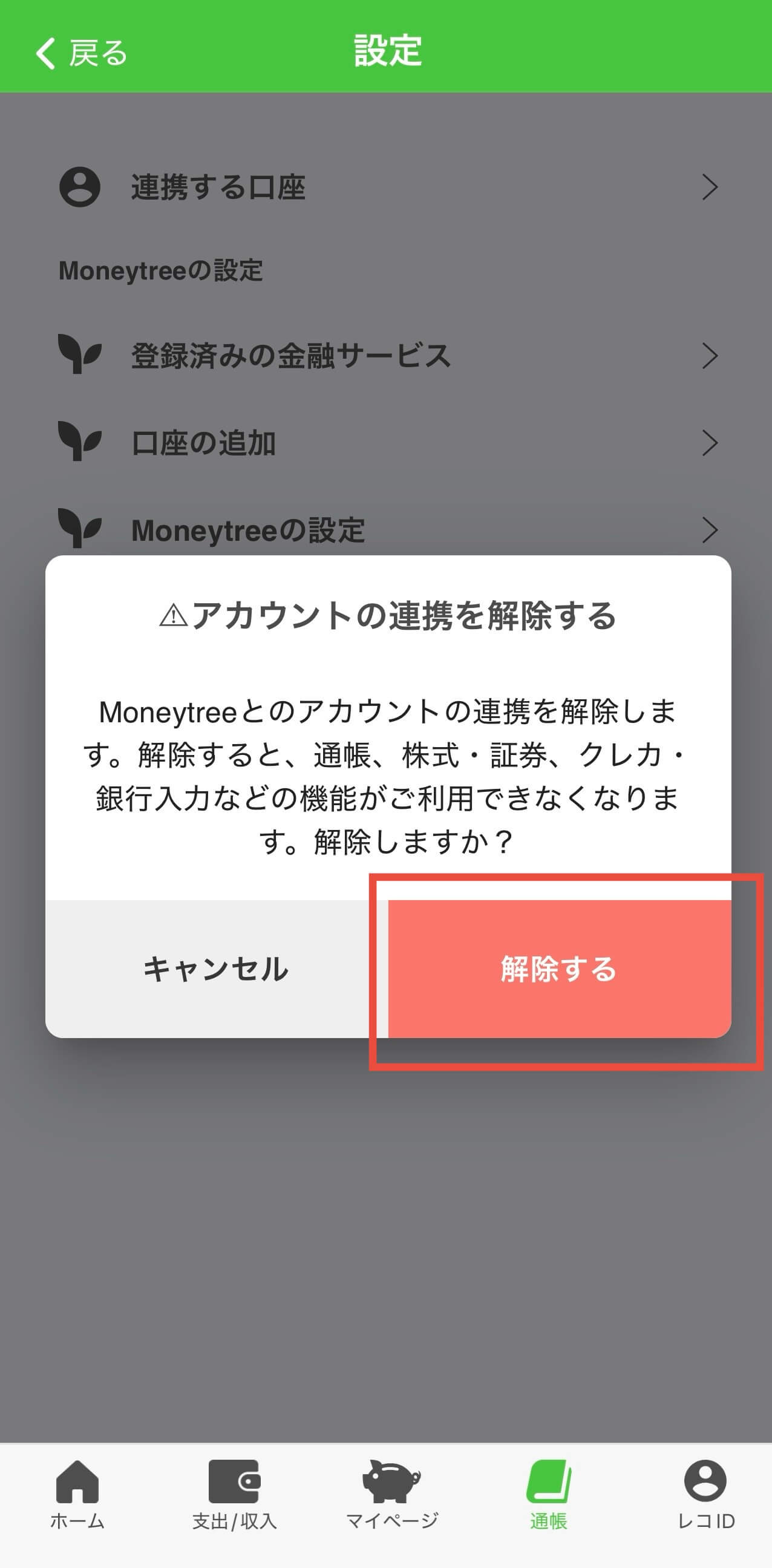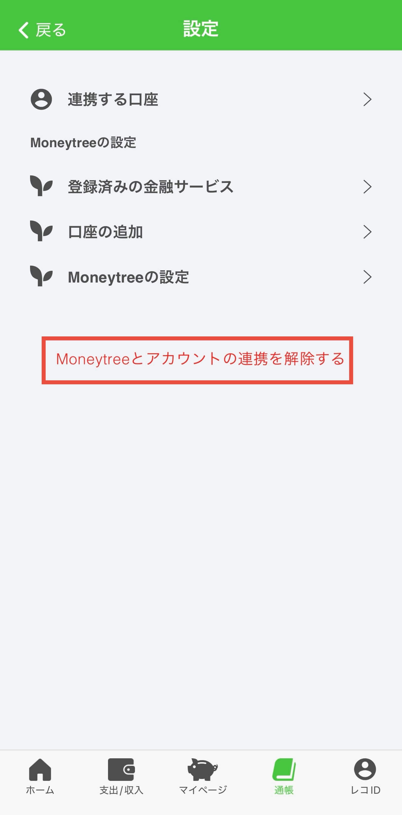 3.「Moneytreeとアカウントの連携を解除する」を押します。