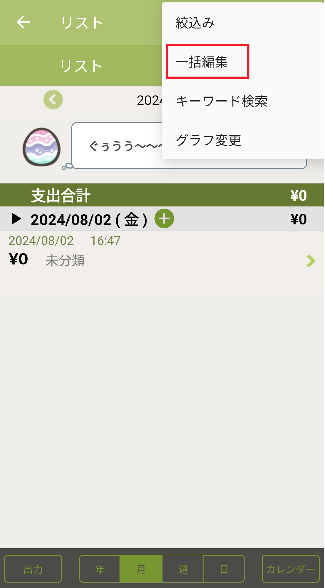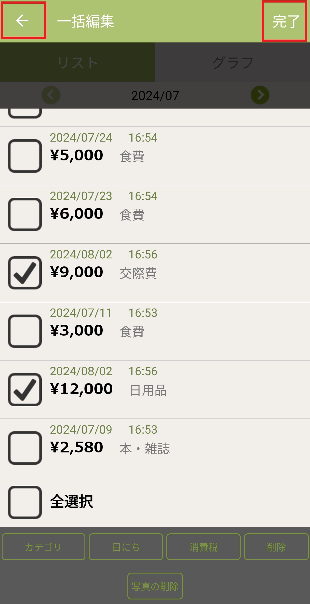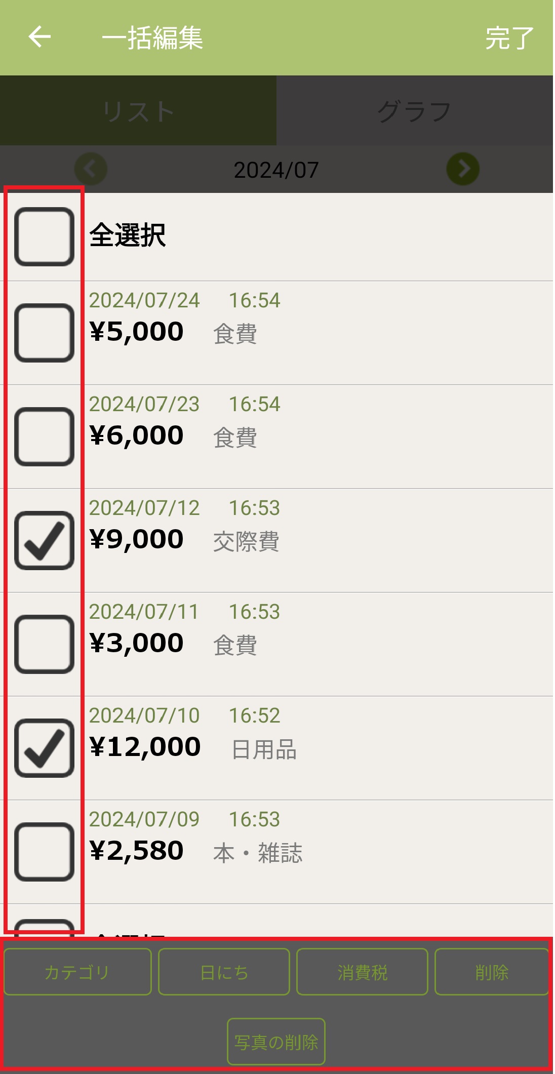 おカネレコには一括編集機能があります。