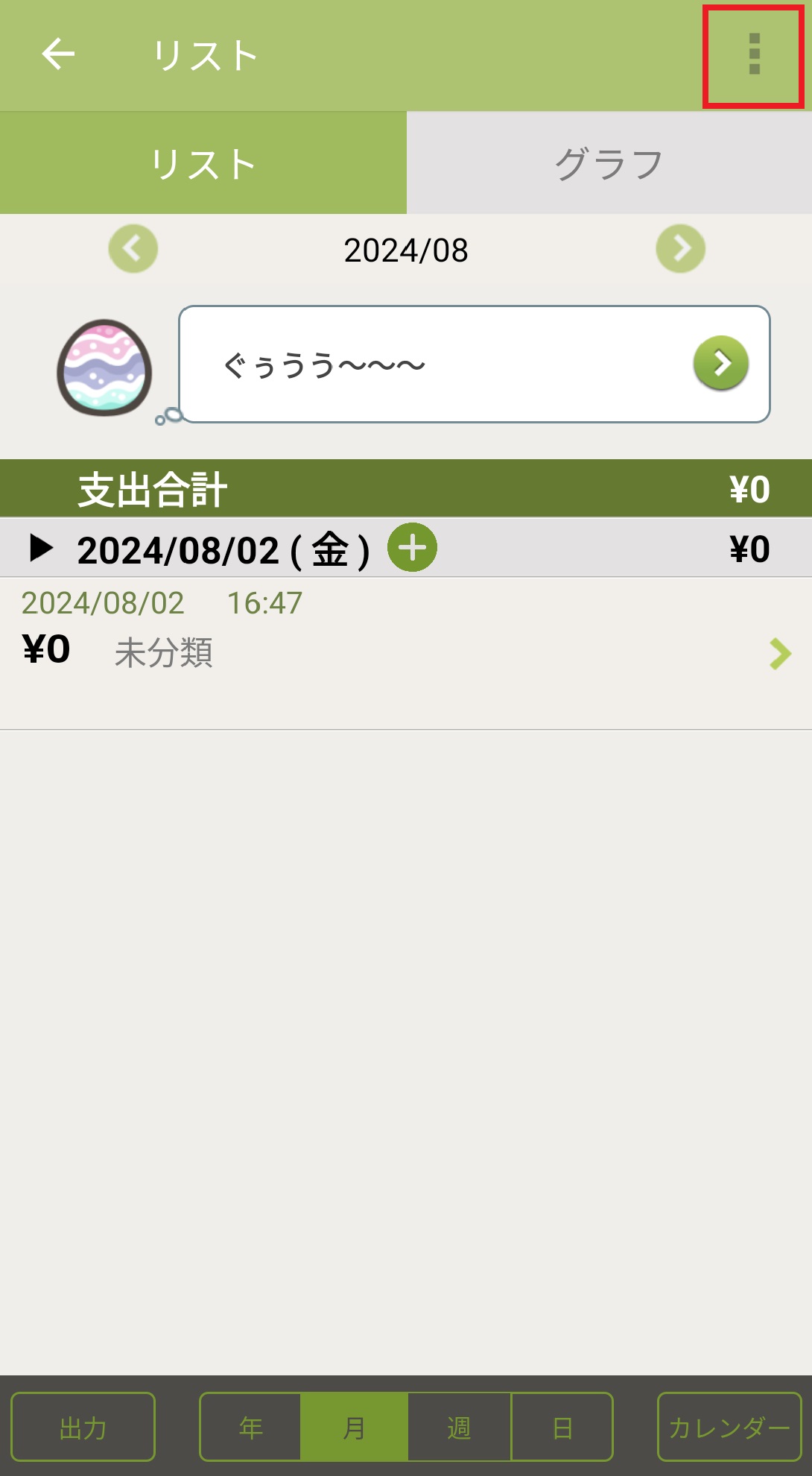 2.リスト画面が表示されますので、右上の「:」(グラフタブの上)を押します。