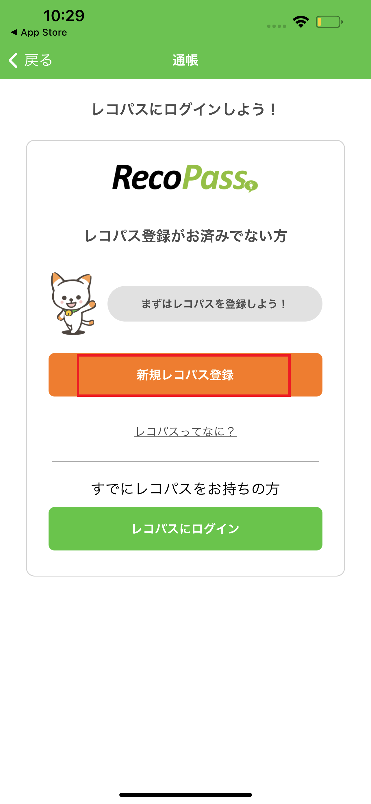 ※レコパスアカウントをお持ちの方は、「レコパスにログイン」を押してください。