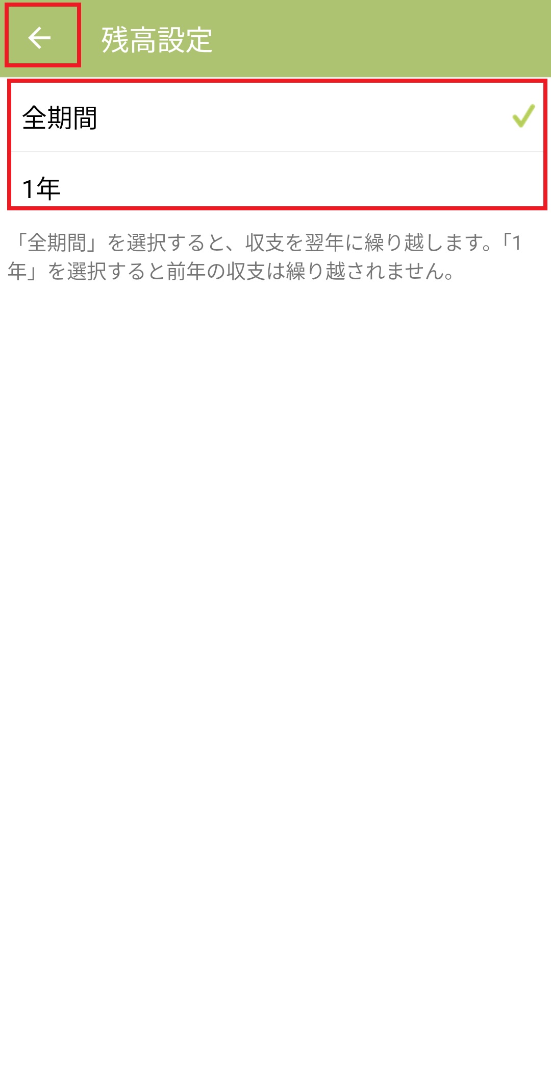 7.繰越期間を選択し、画面左上の「←」を押して保存完了です。