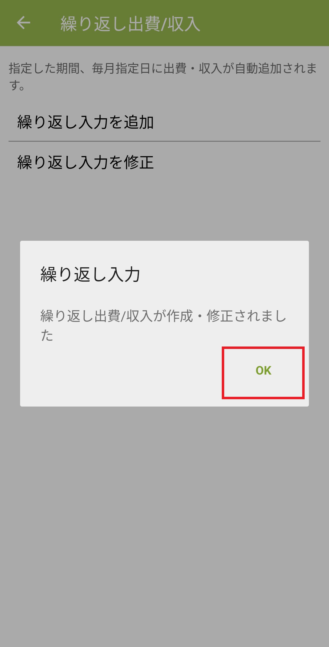 13.繰り返し入力のメッセージが表示されたら、「OK」ボタンを押します。