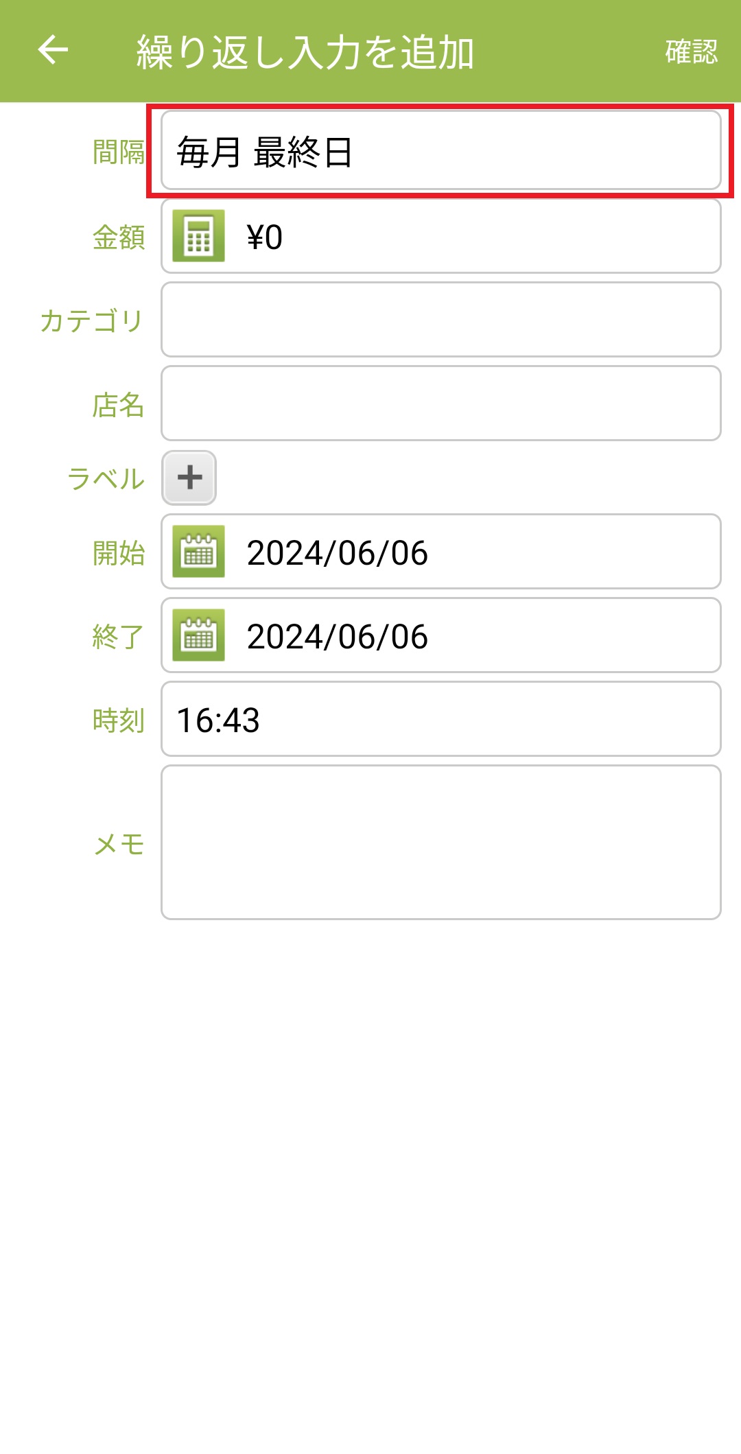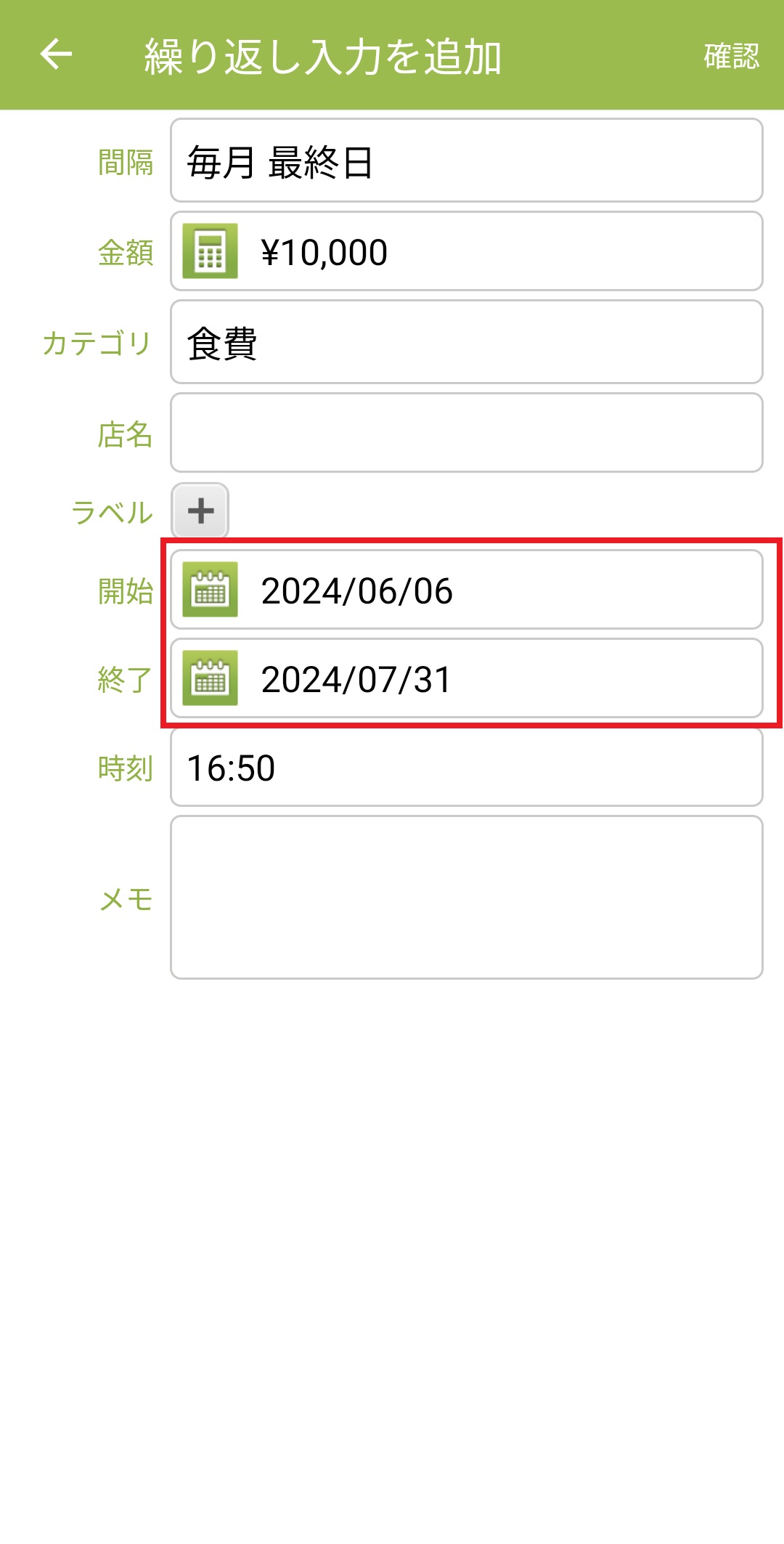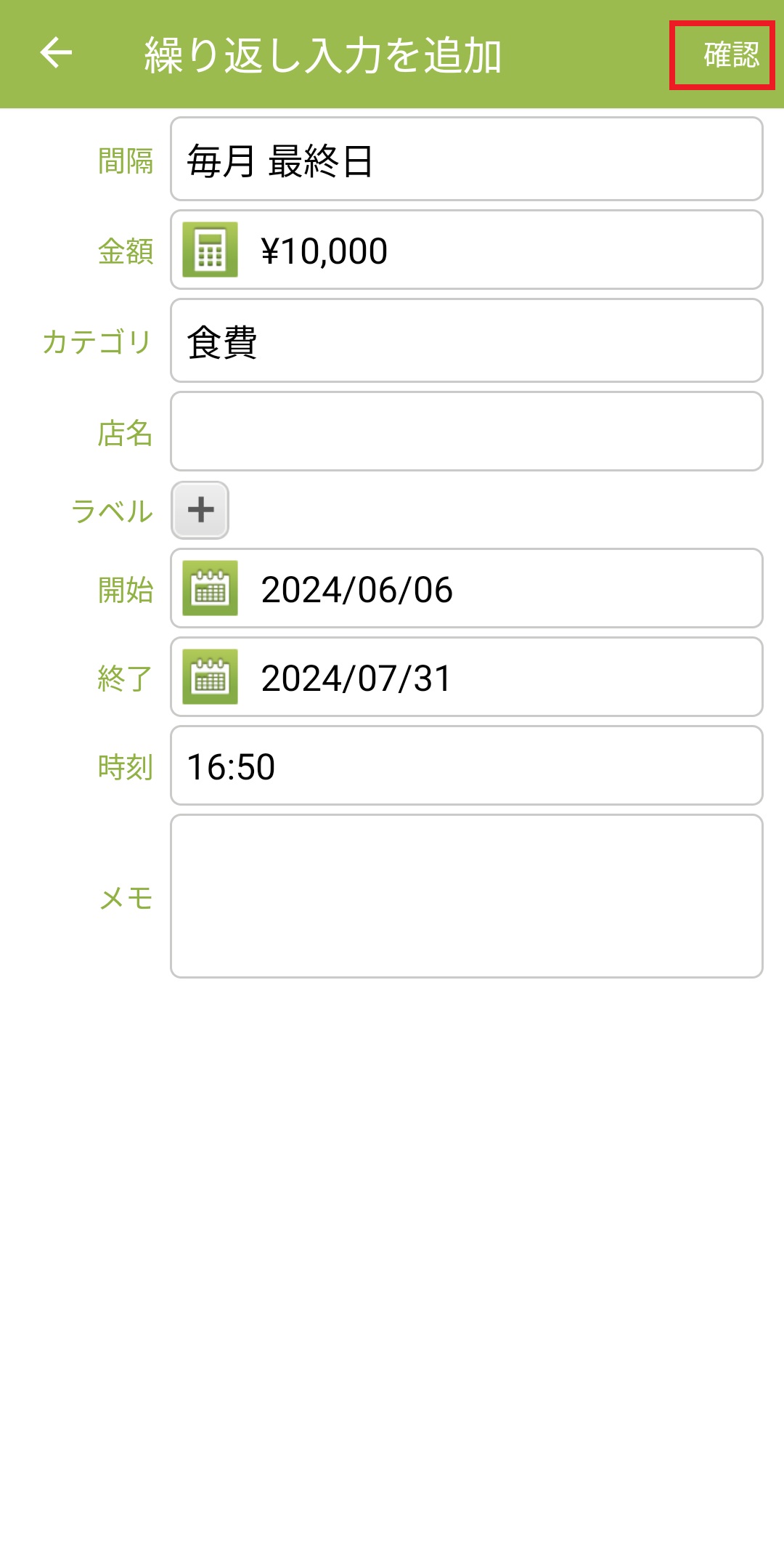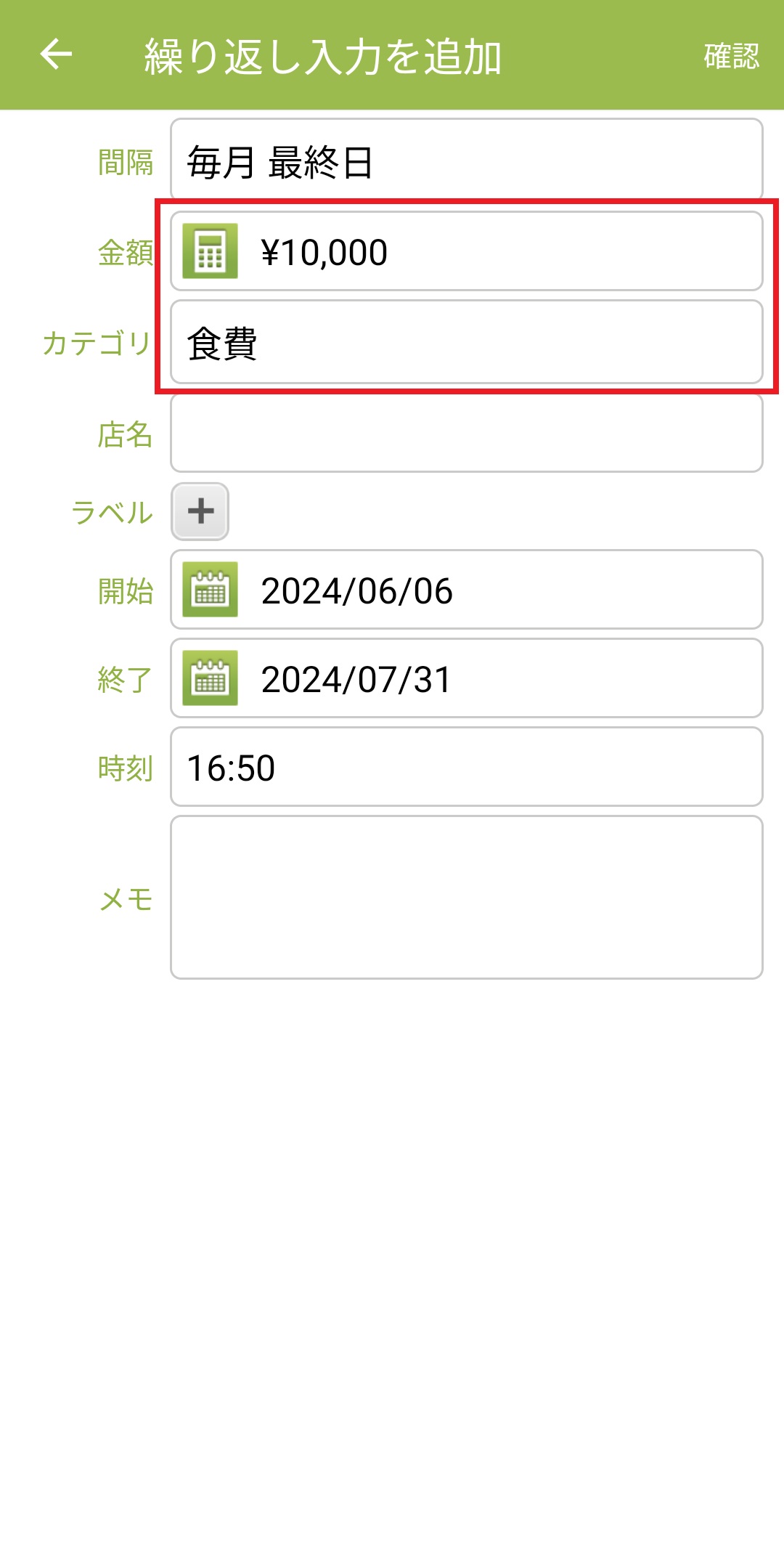 10.金額とカテゴリーを設定します。