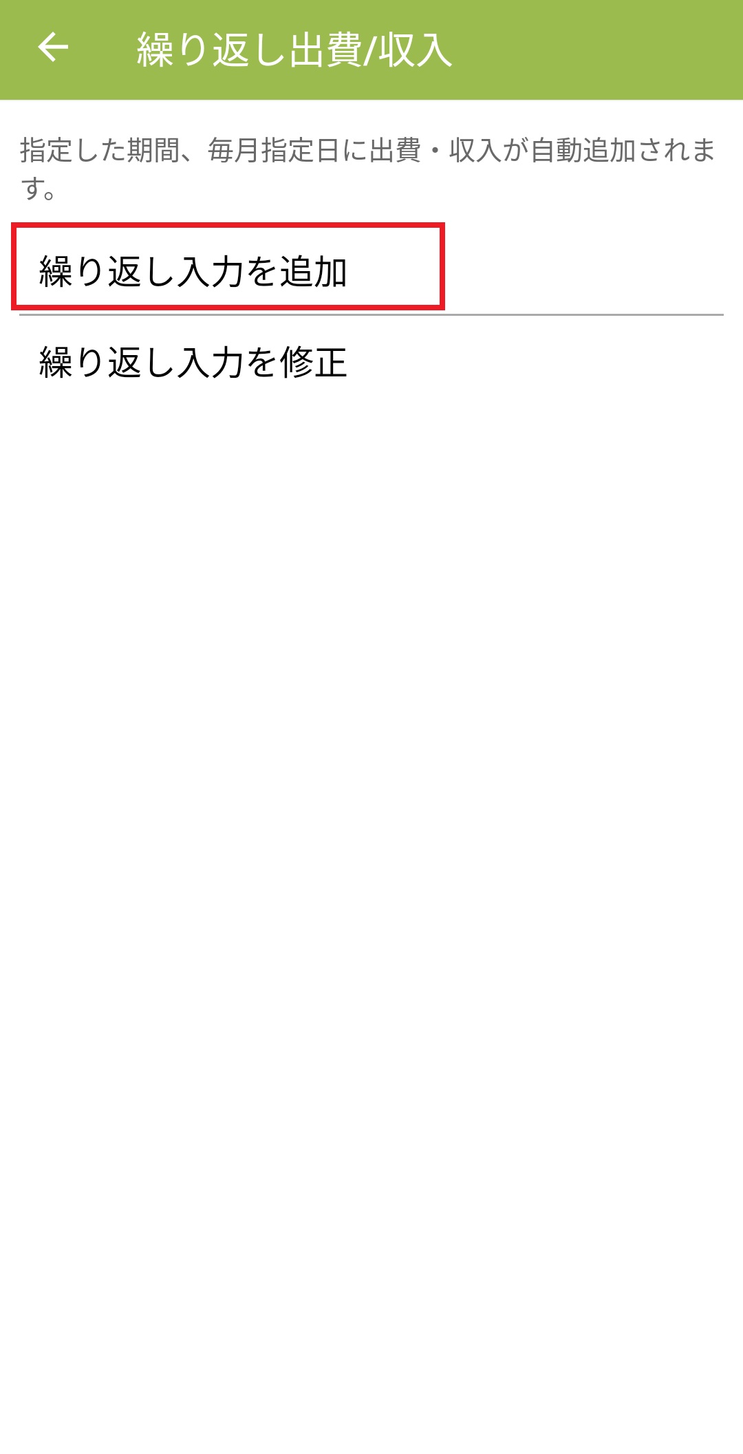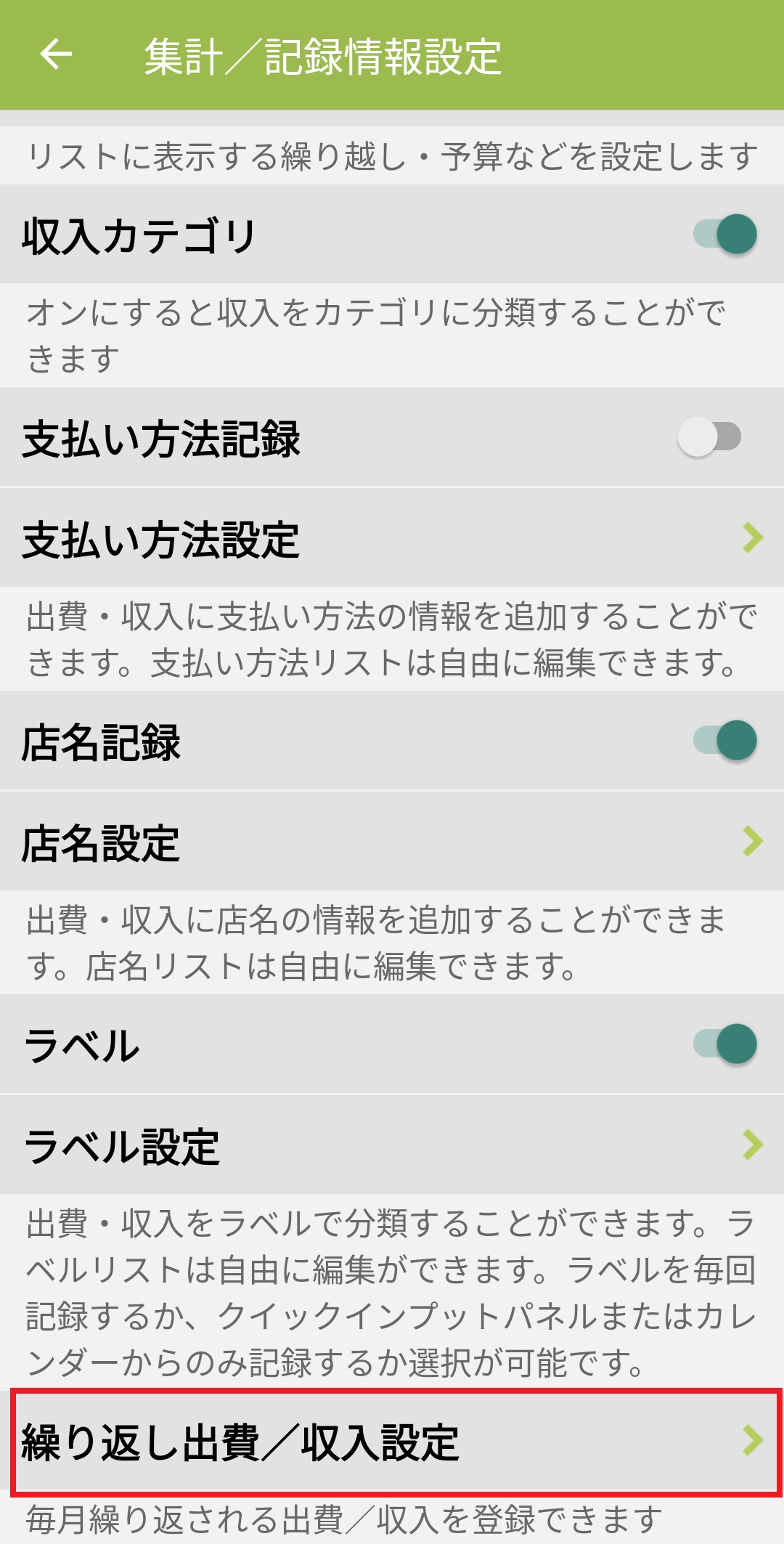 3. ページの一番下に表示される「繰り返し出費/収入設定」を押します。