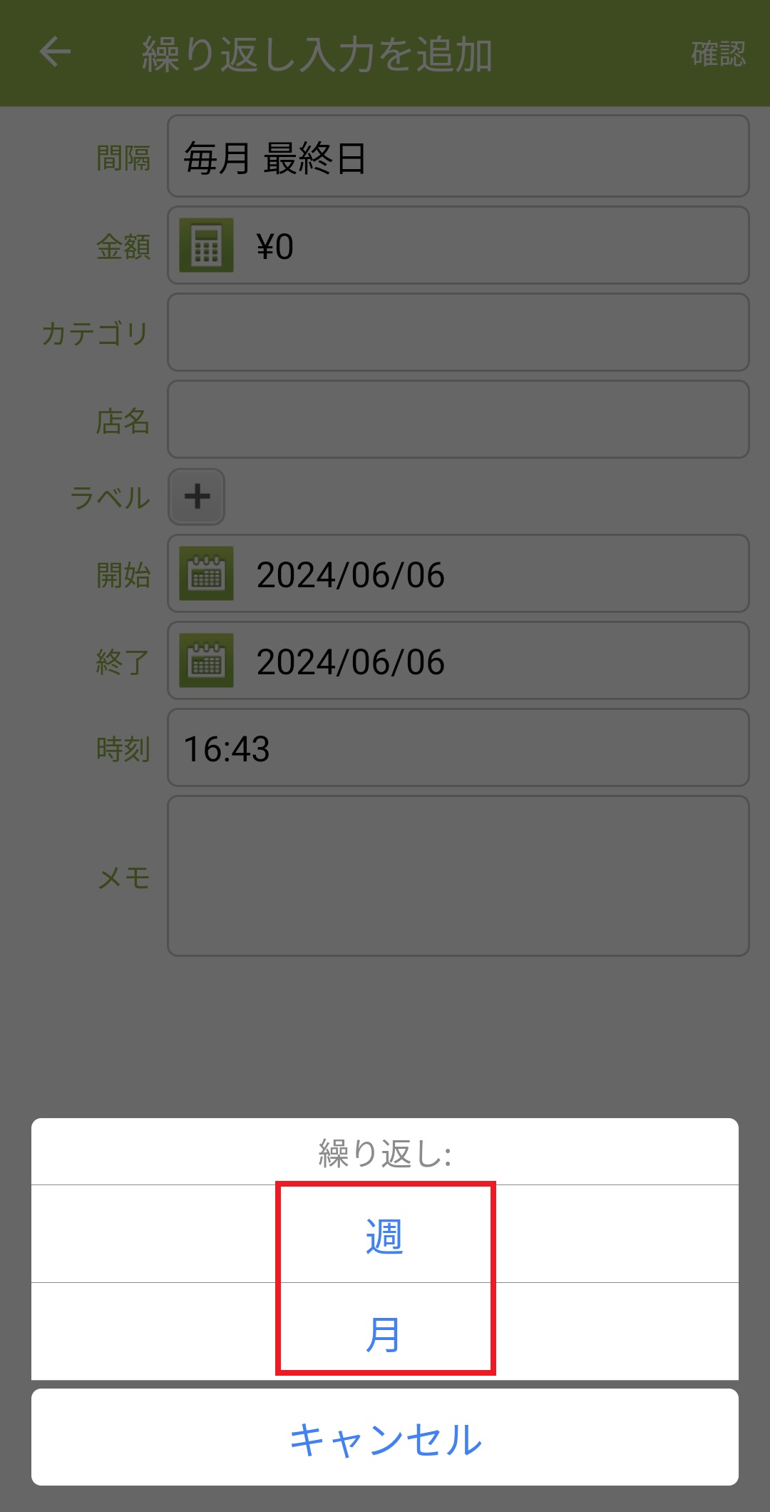6. 1か月に1回の場合は「月」を押します。