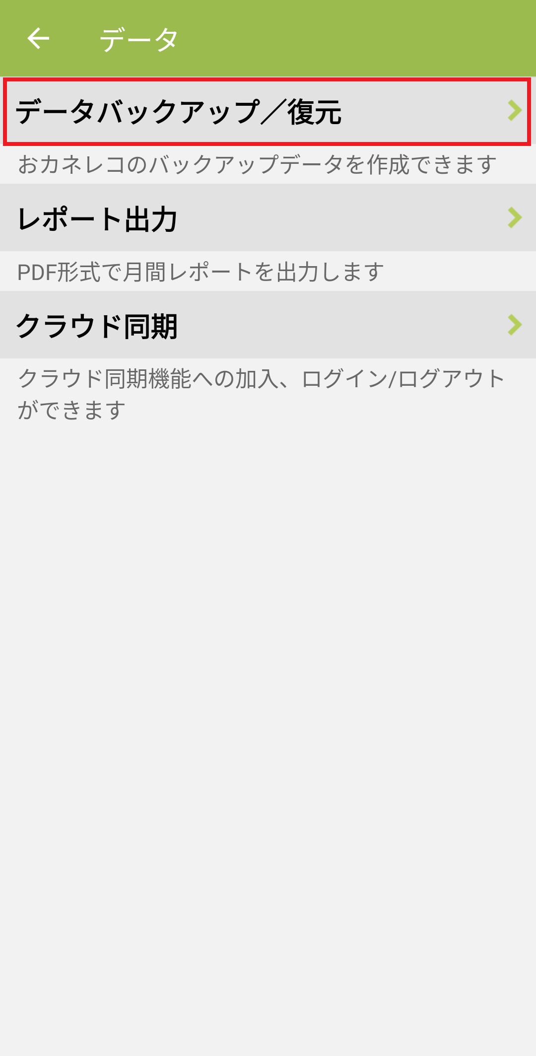 3. 「データバックアップ/復元」を押します。