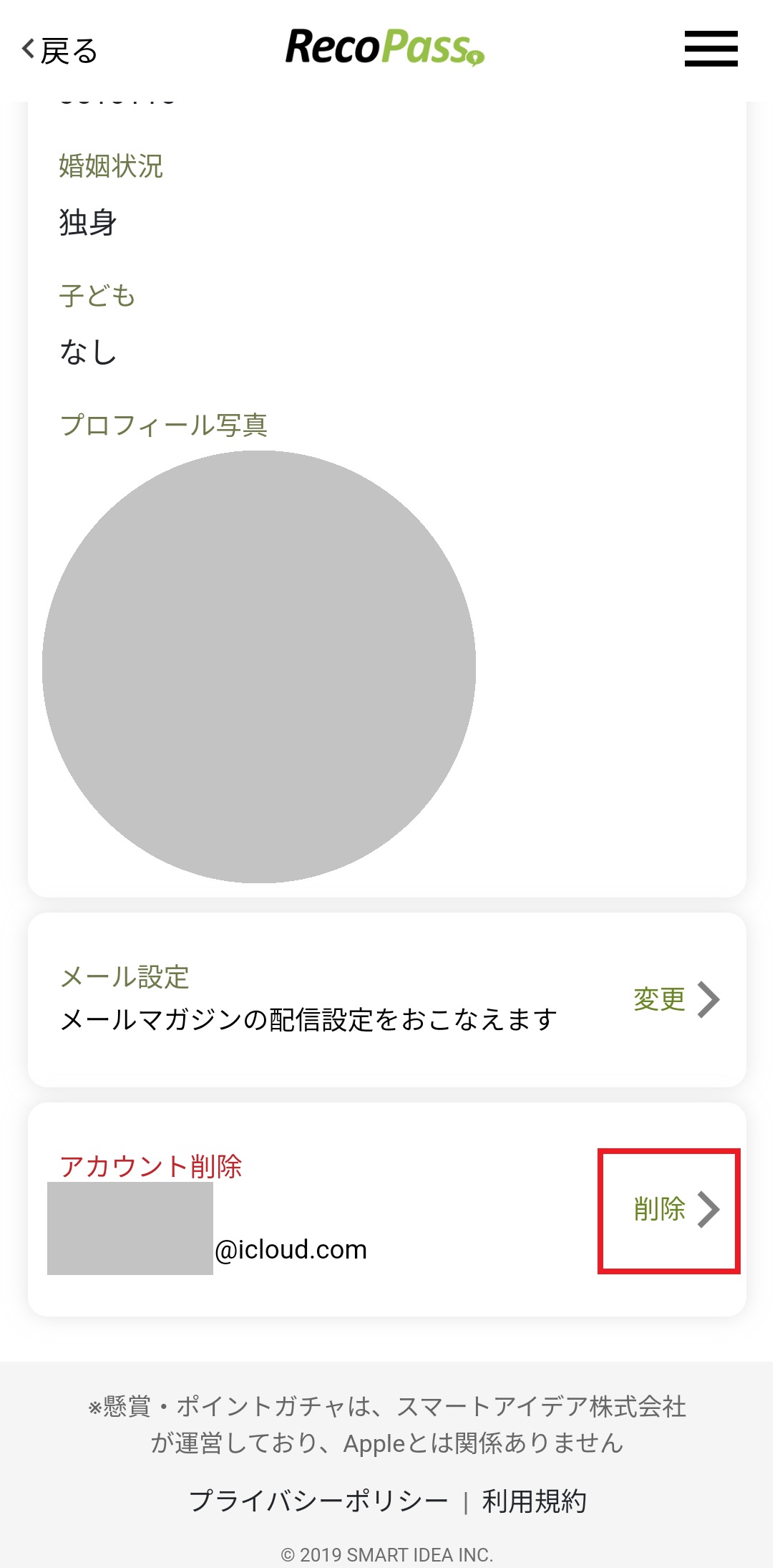 レコパス(ポイントサイト)へアカウントを登録されている場合は、アプリを削除される前に下記の手順でアカウント削除を行っていただけますようお願い致します。