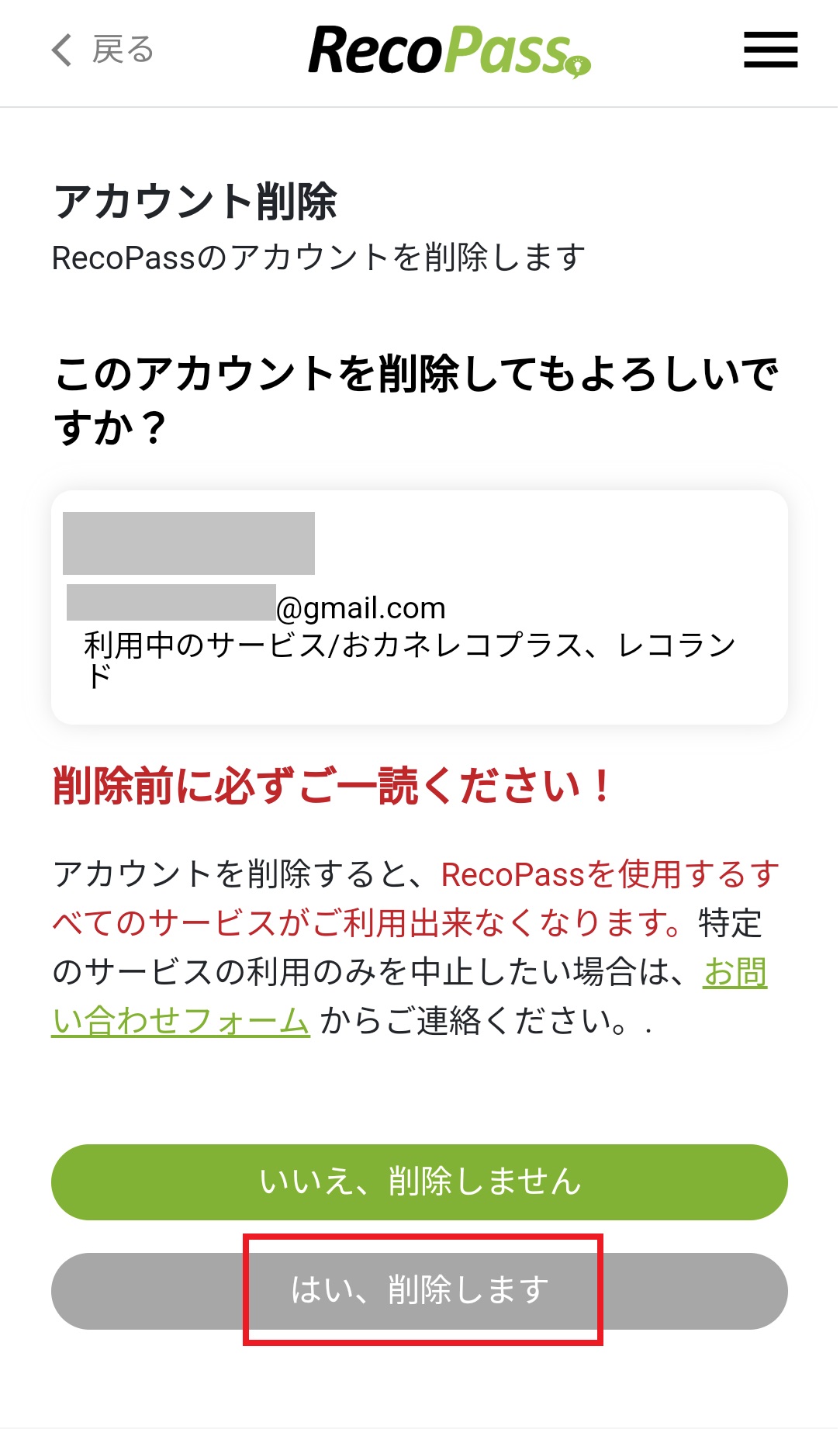 5.アカウントの削除が完了いたしましたら、おカネレコアプリも削除していただけますようお願い致します。
