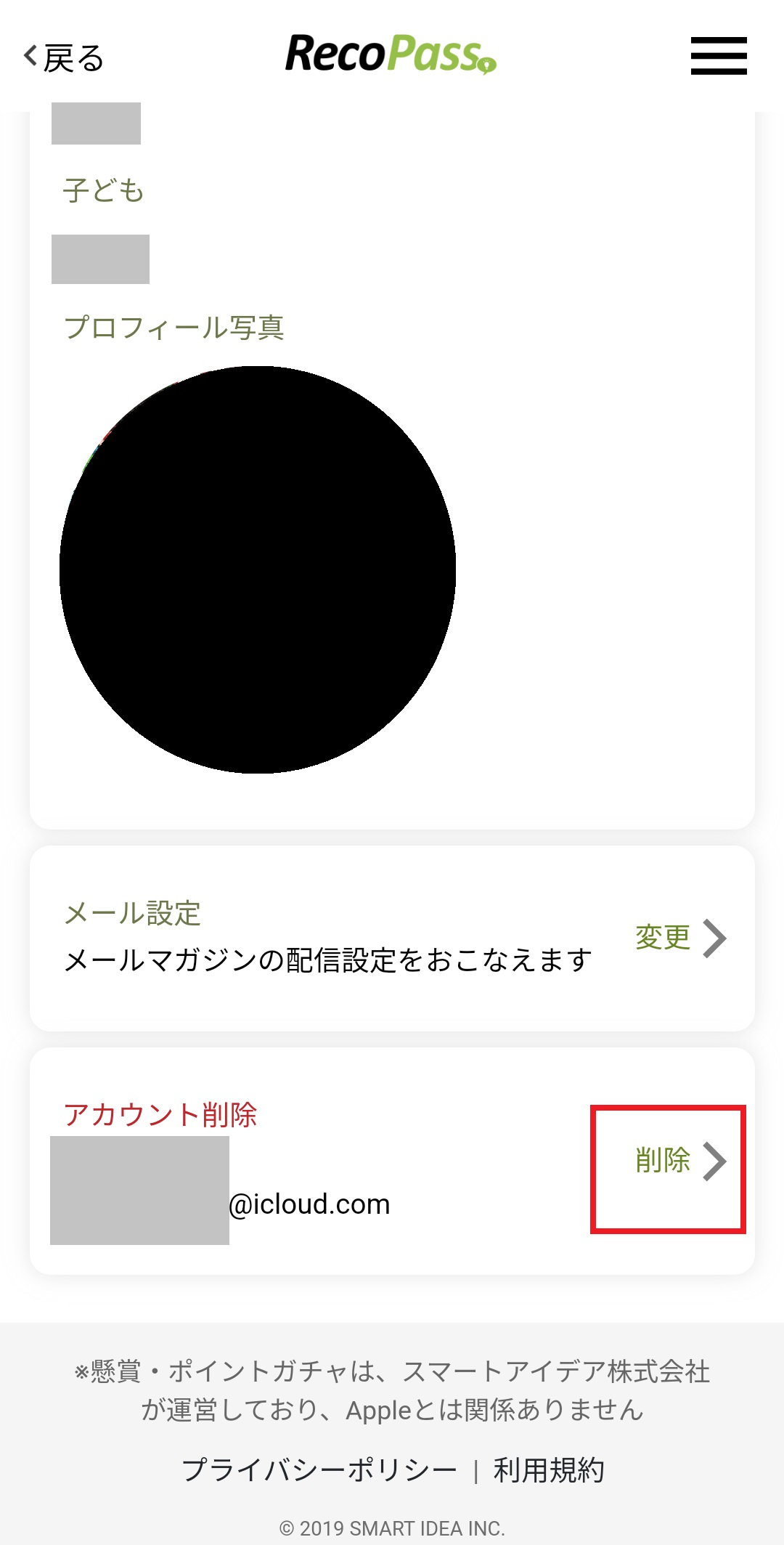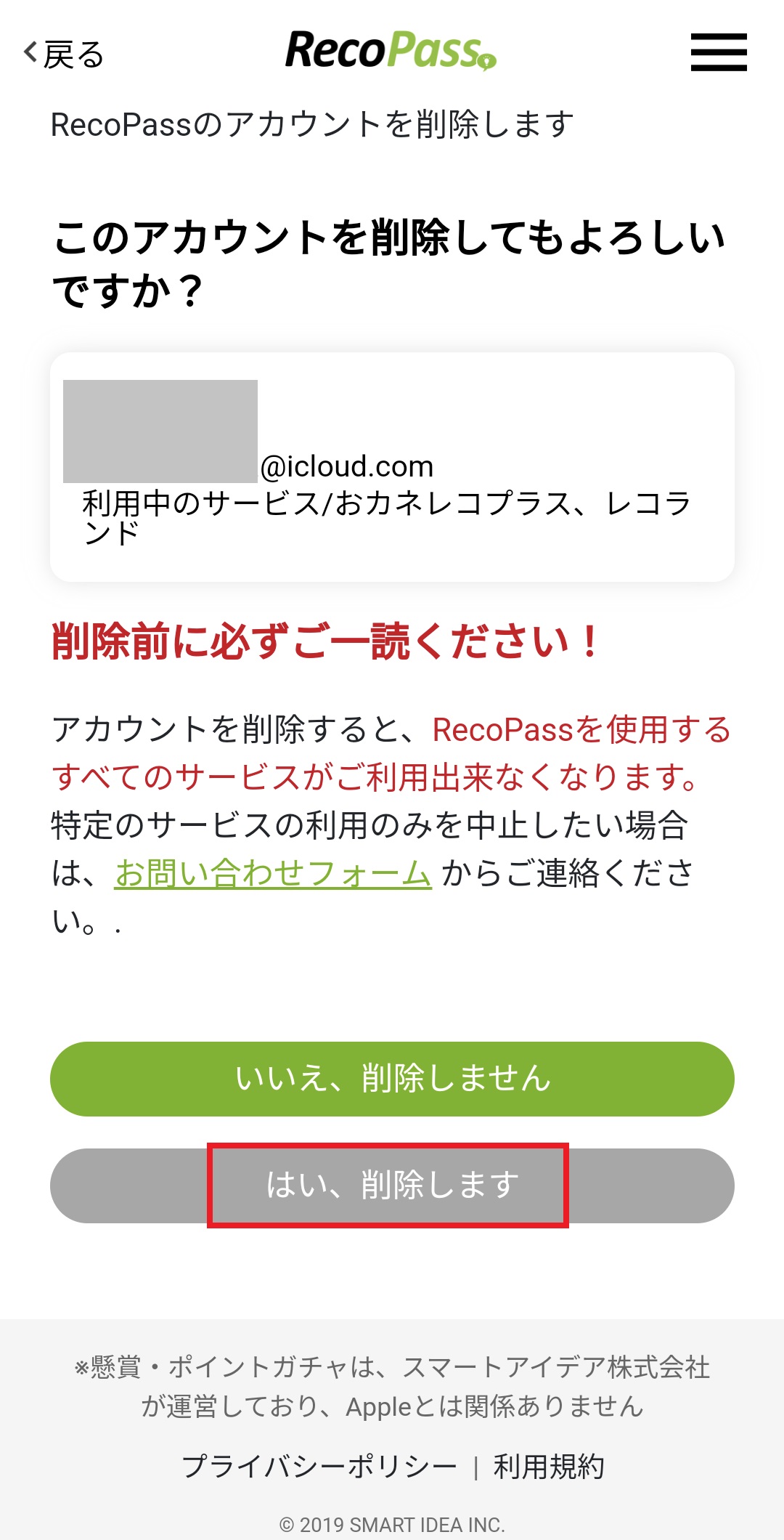 ※アカウントの削除が上手くいかないという場合は、「feedback@smart-idea.jp」へお問い合わせください。