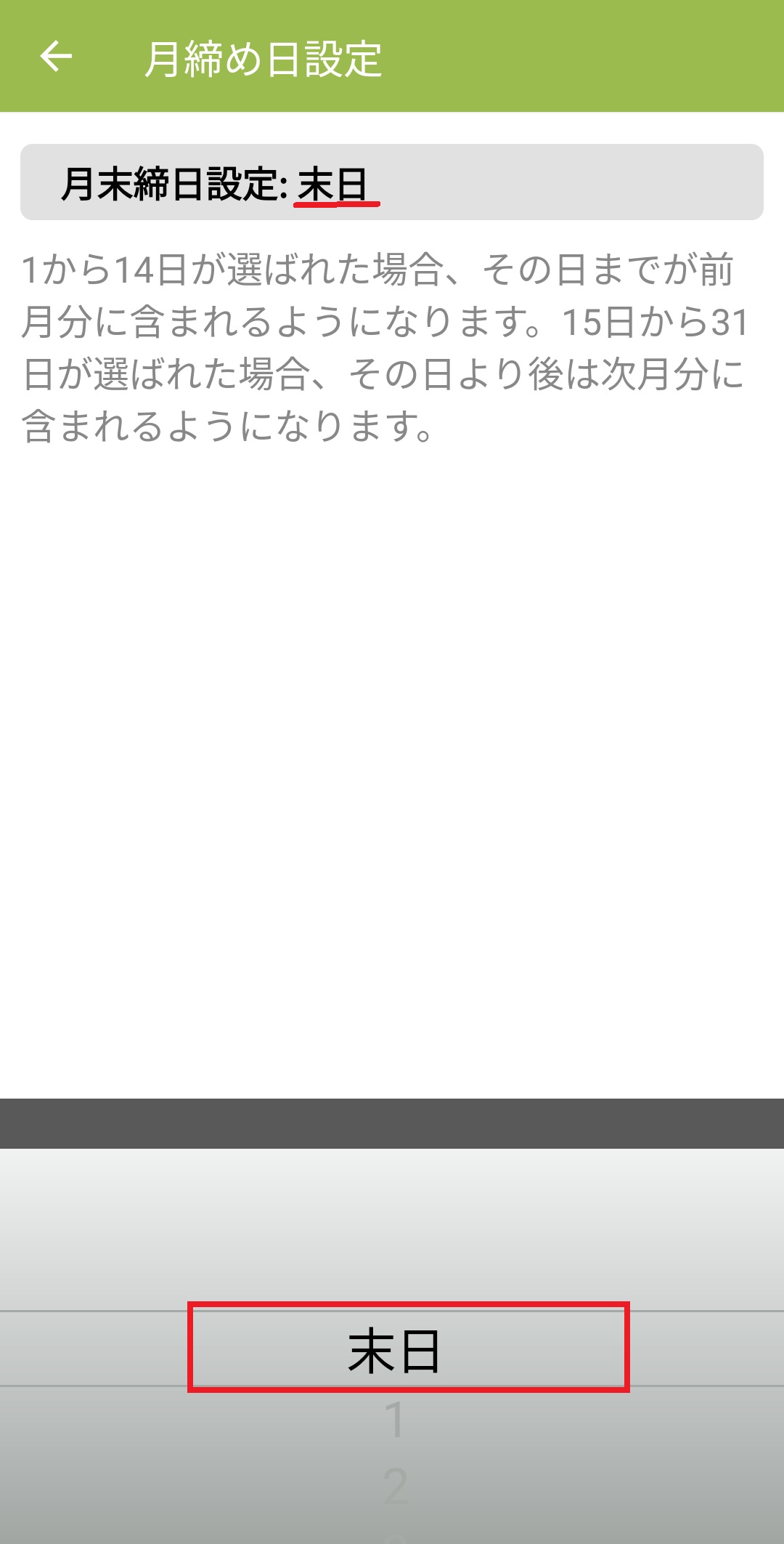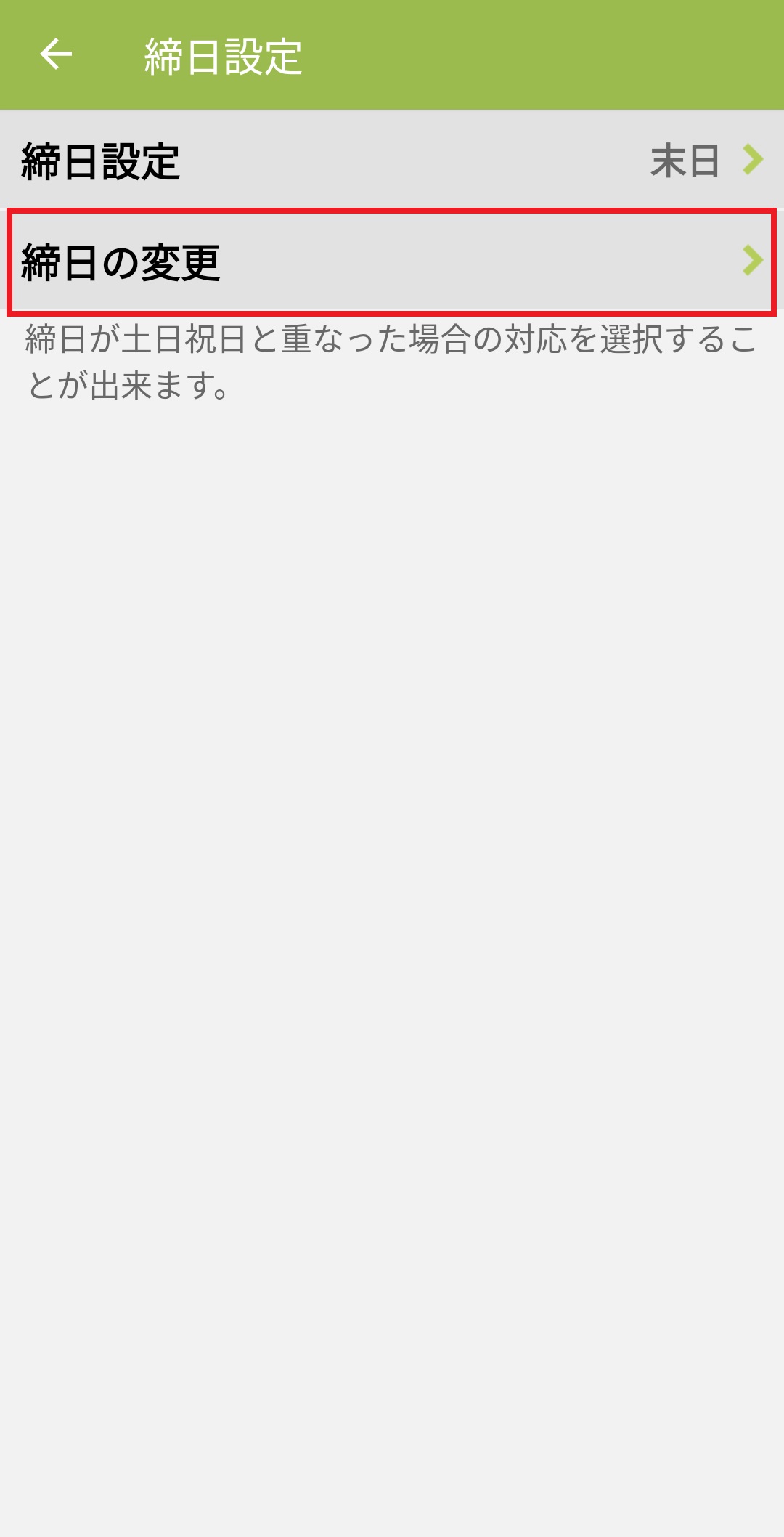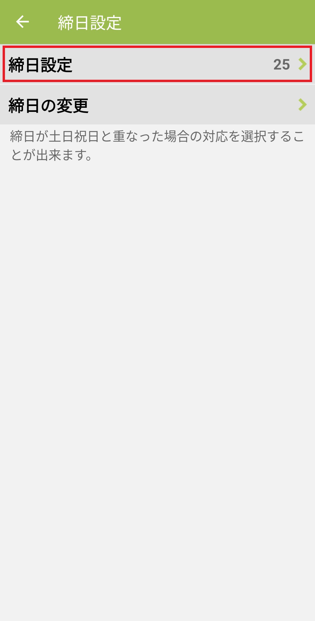 4.「締日設定 >」から締日の設定ができます。
