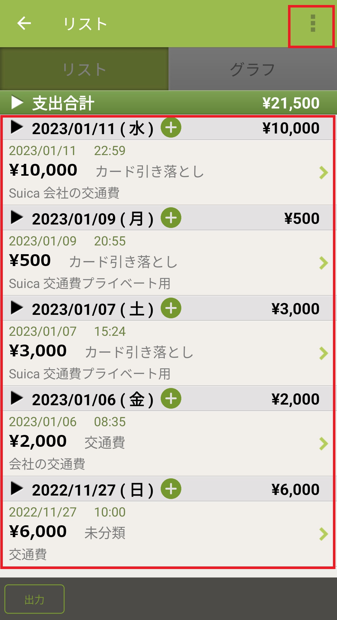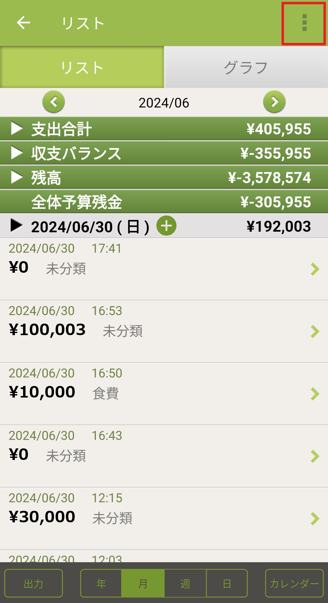 2.リスト画面が表示されますので、右上の「:」ボタンを押します。