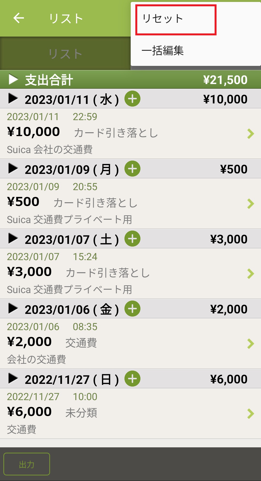 1.おカネレコを起動しホーム画面下部、「リスト」ボタンを押します。