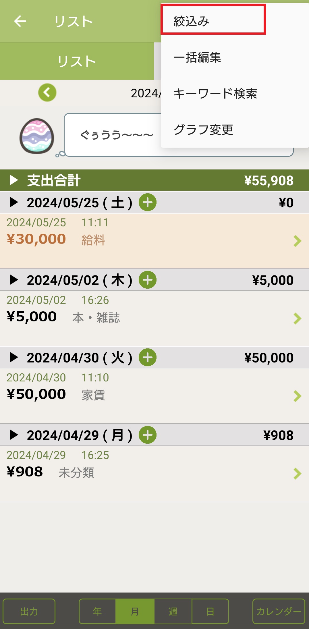 8.絞込みを解除したい場合は、再度右上の「:」を押します。