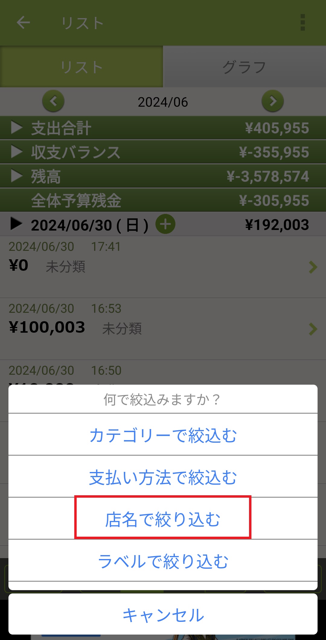 【店名で絞り込んで表示する方法】