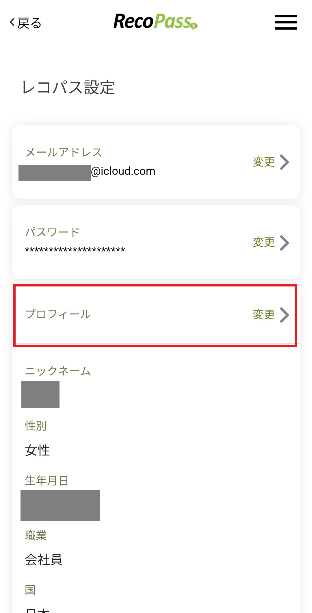レコパスにご登録いただいているプロフィールはマイページからご変更いただけます。
