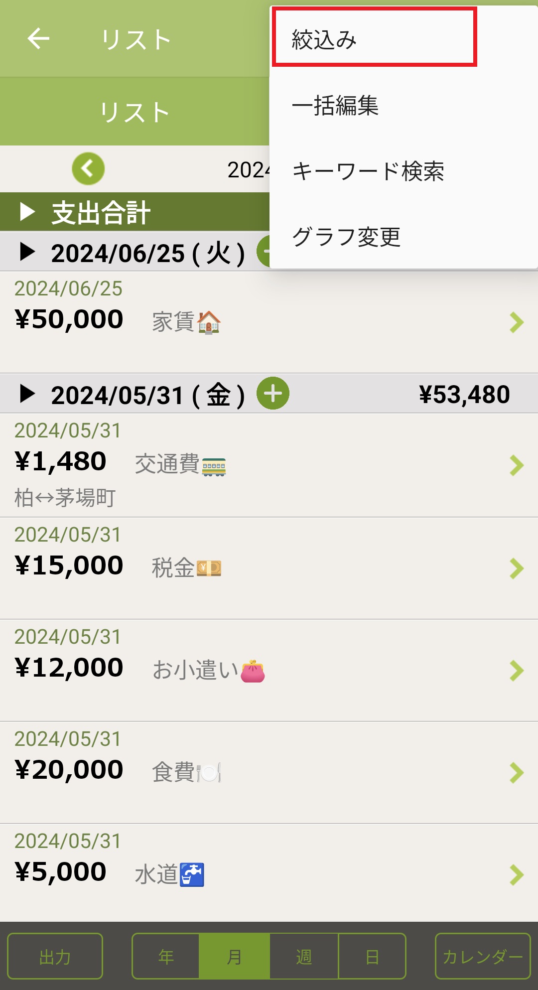 8.絞り込みを解除したい場合は、再度右上の編集ボタン(■が縦に3つ並んだボタン)を押します。