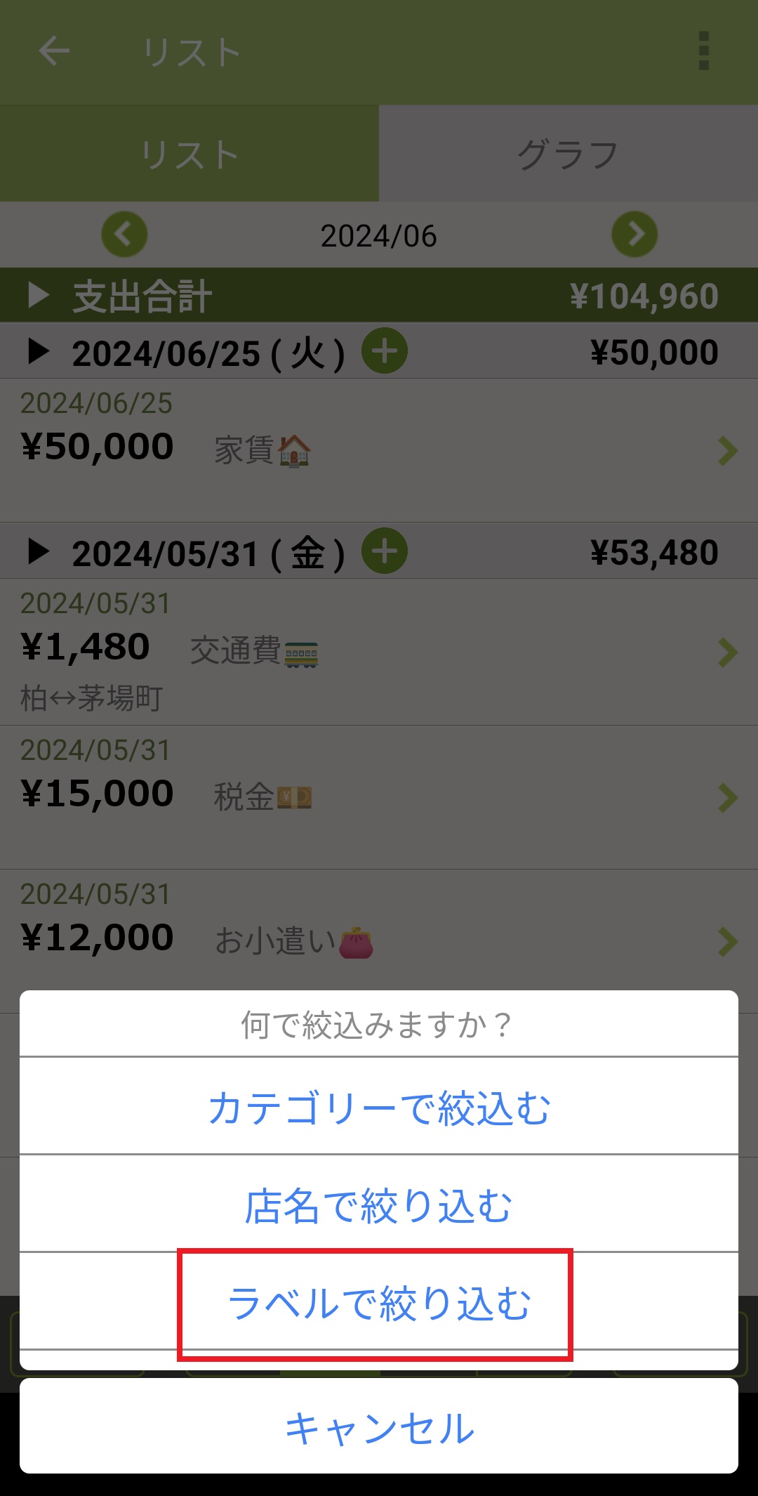 5.絞り込みたいラベル名を押すと、右端にチェックマークがつきます。(複数選択も可能です。)