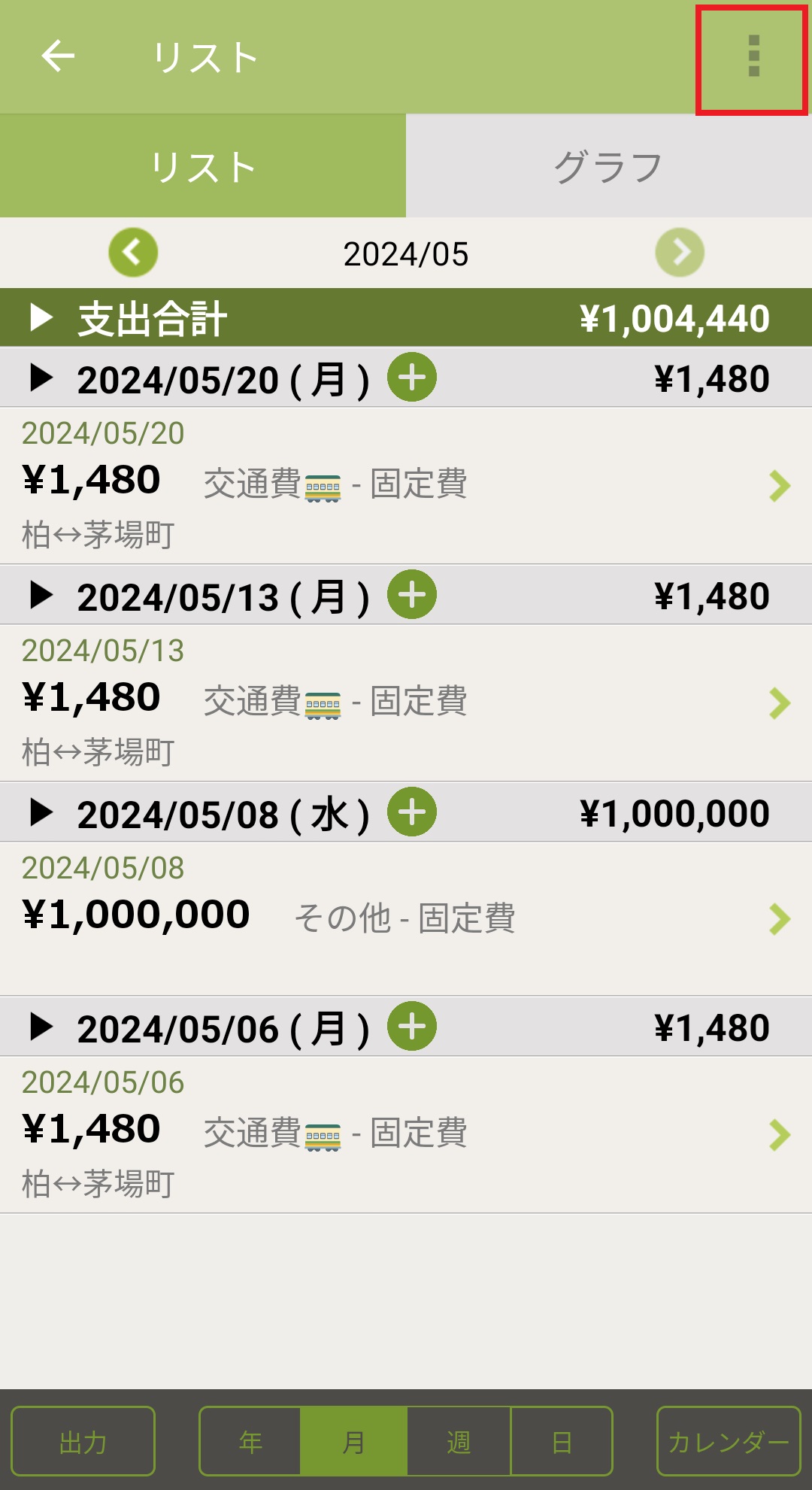 2.画面右上の編集ボタン(■が縦に3つ並んだボタン)を押します。