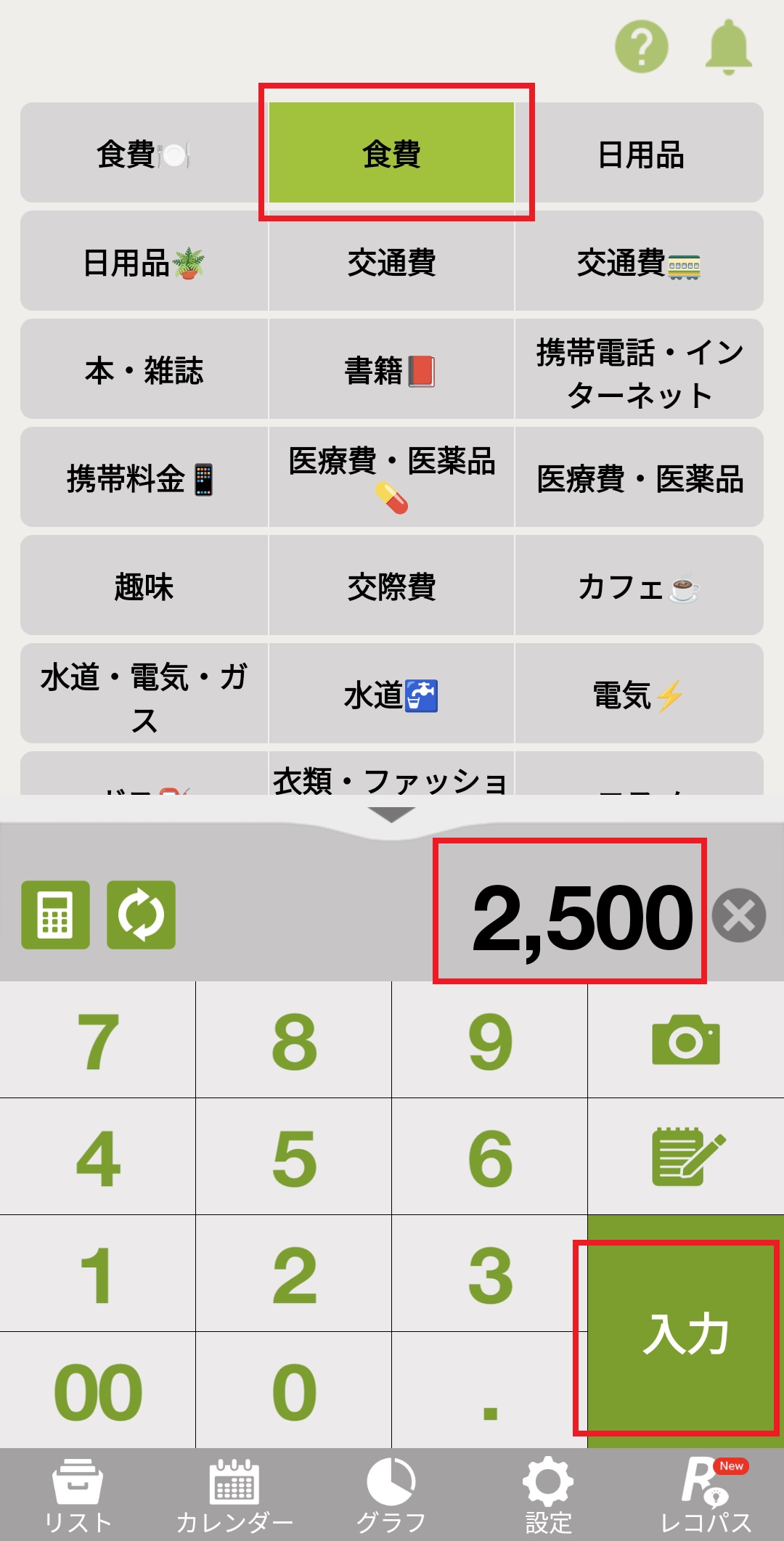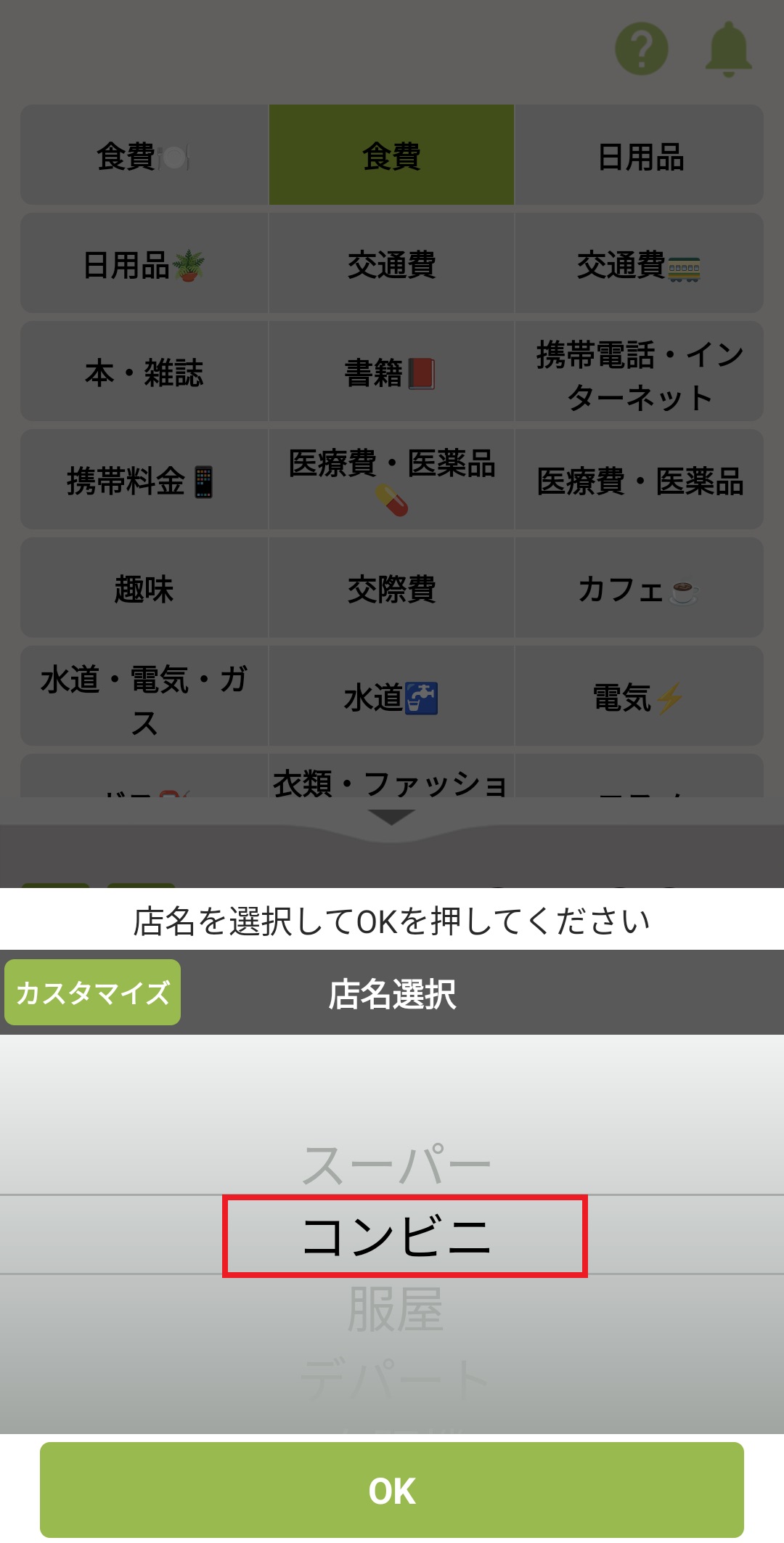 5.「ラベル」、「ラベルを毎回記録する」の両方が”オン”の状態だと支出を入力する際に毎回ラベルの入力画面が出てきます。