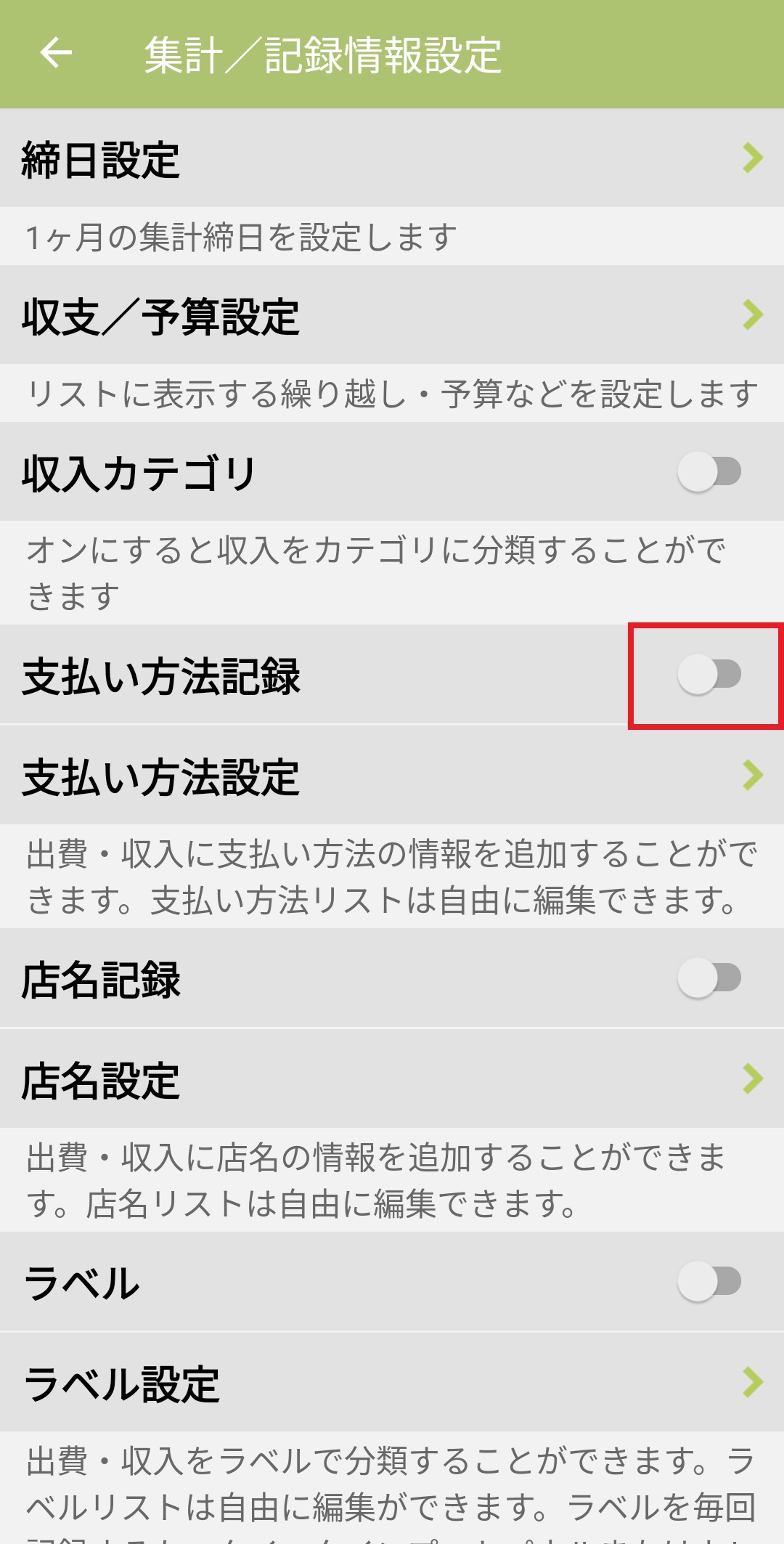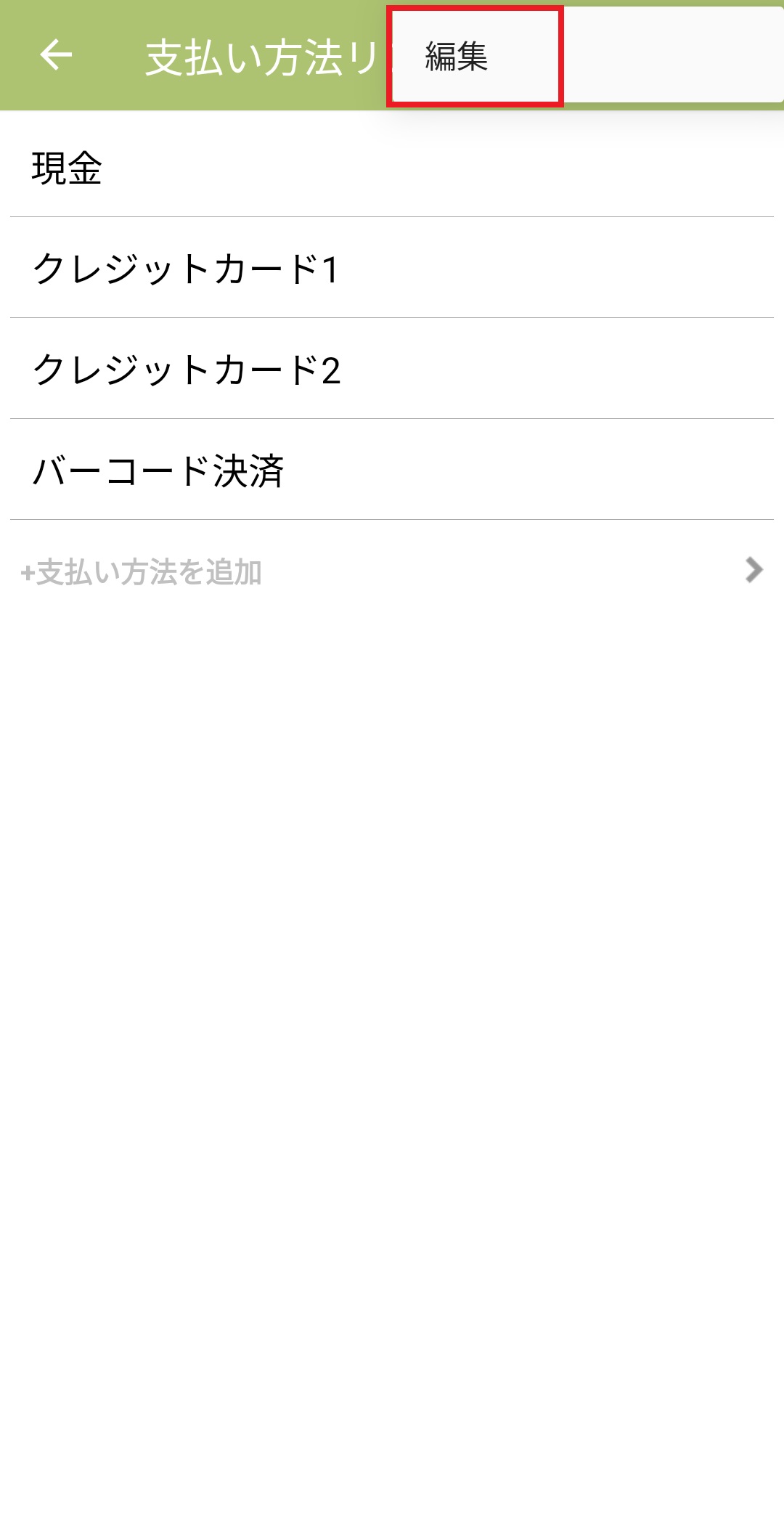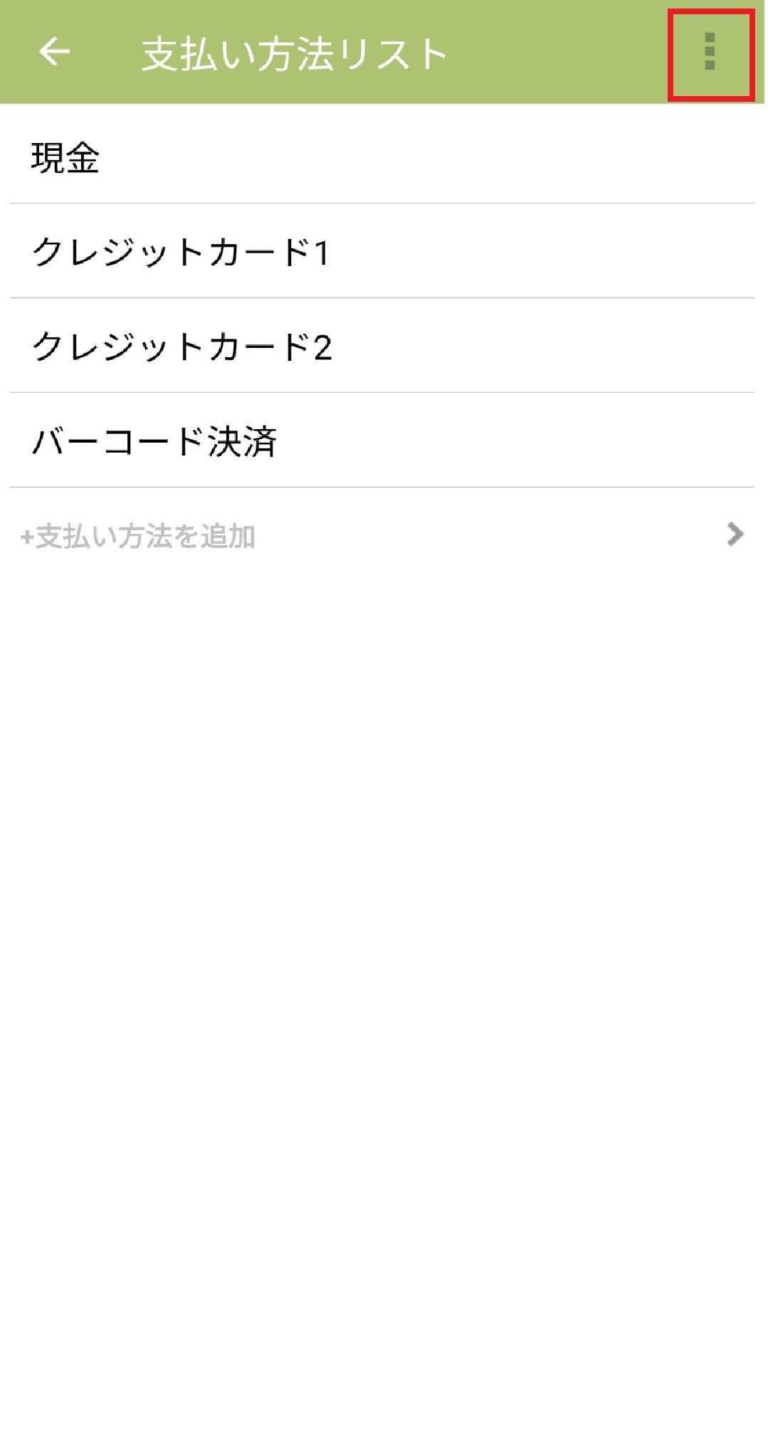 ※支払い方法を削除すると、該当の支払い方法で過去に記録した出費/収入の支払い方法名が”?”に変更されます。