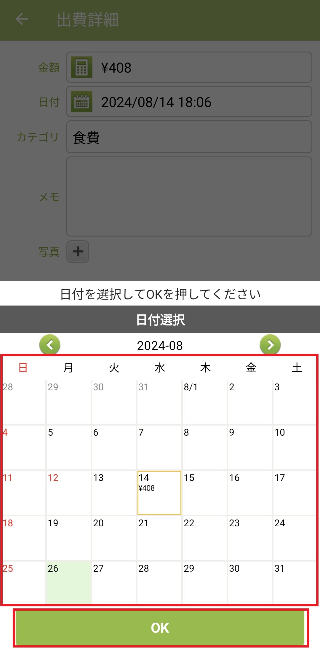 12.カレンダー上で日付を選択していただき、「OK」を押していただくと日付が変更できます。