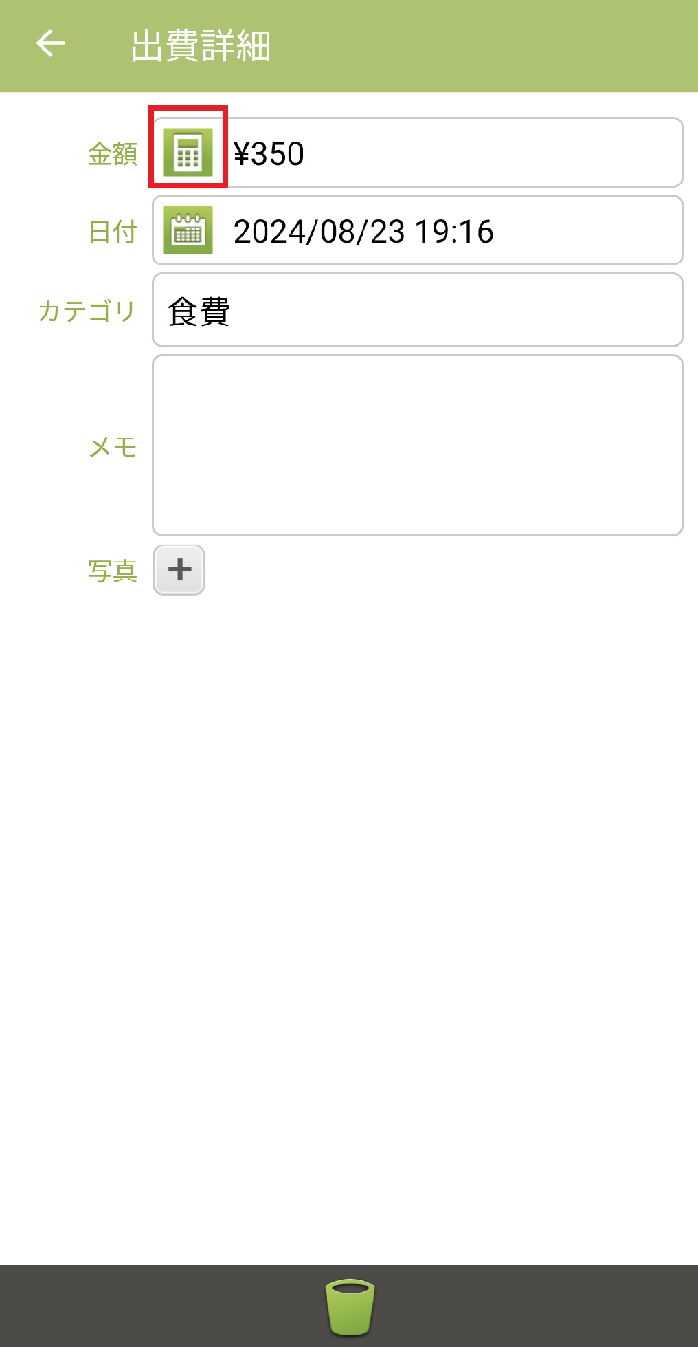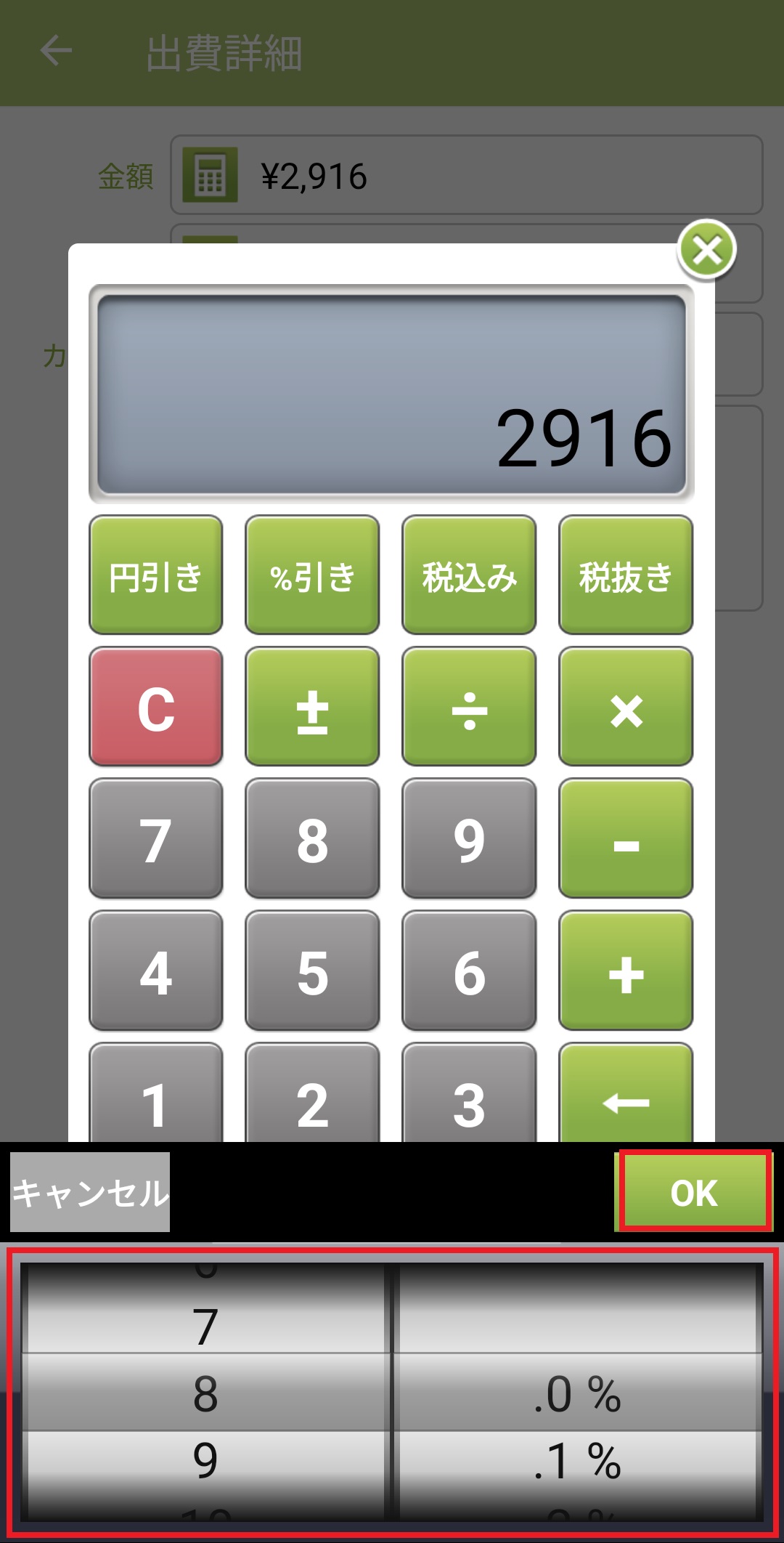 3.金額欄の左端に表示されている電卓マークを押していただくと、電卓が表示されます。
