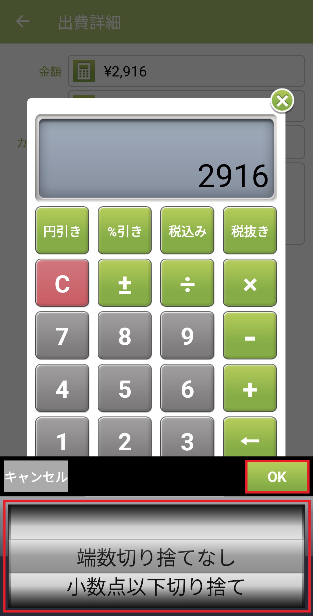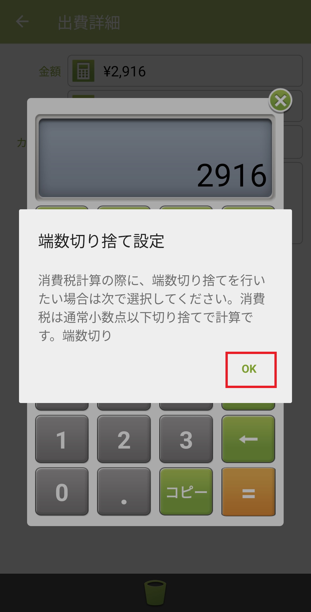 6.次に端数処理設定を行います。画面下部に選択肢が表示されますので、選択していただき「OK」を押します。