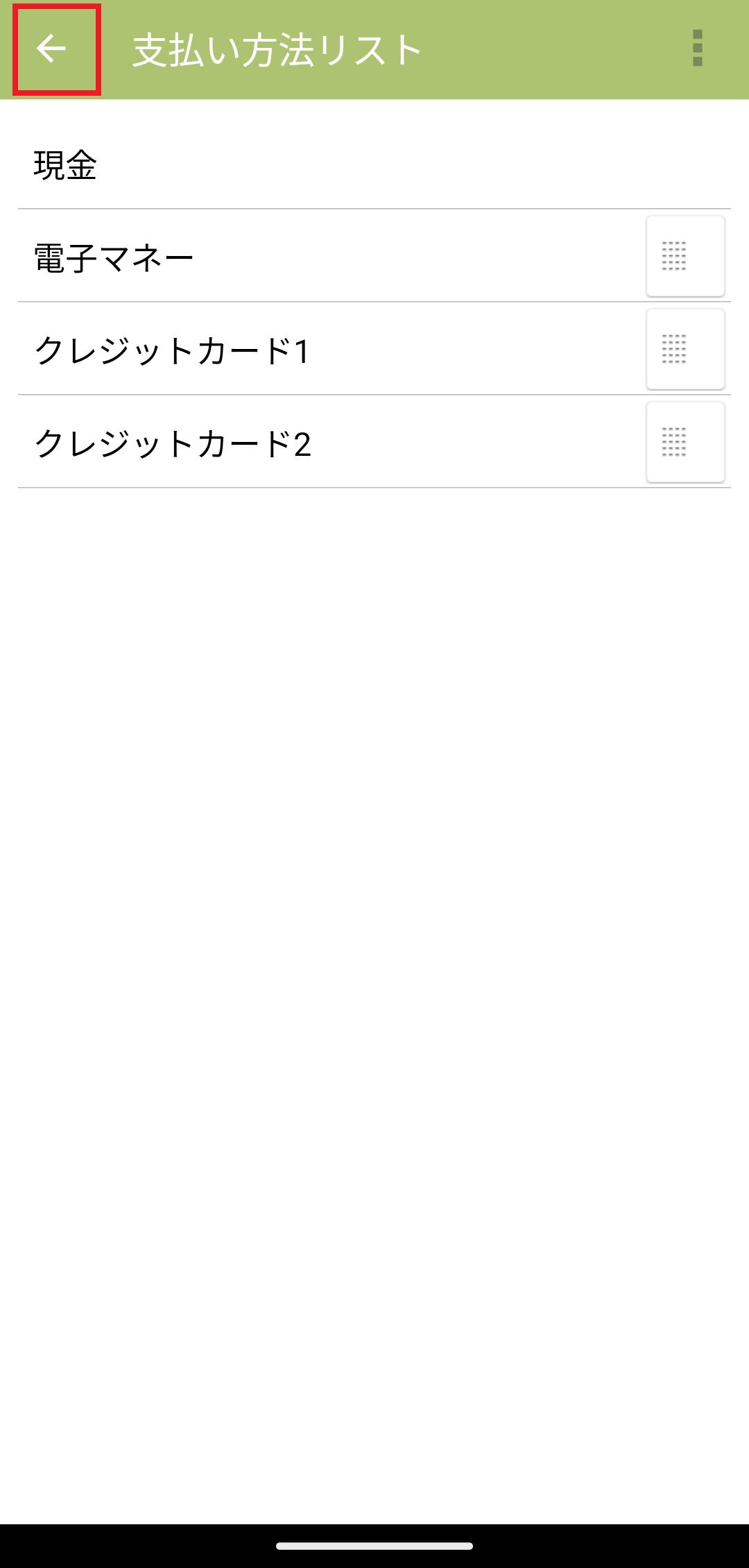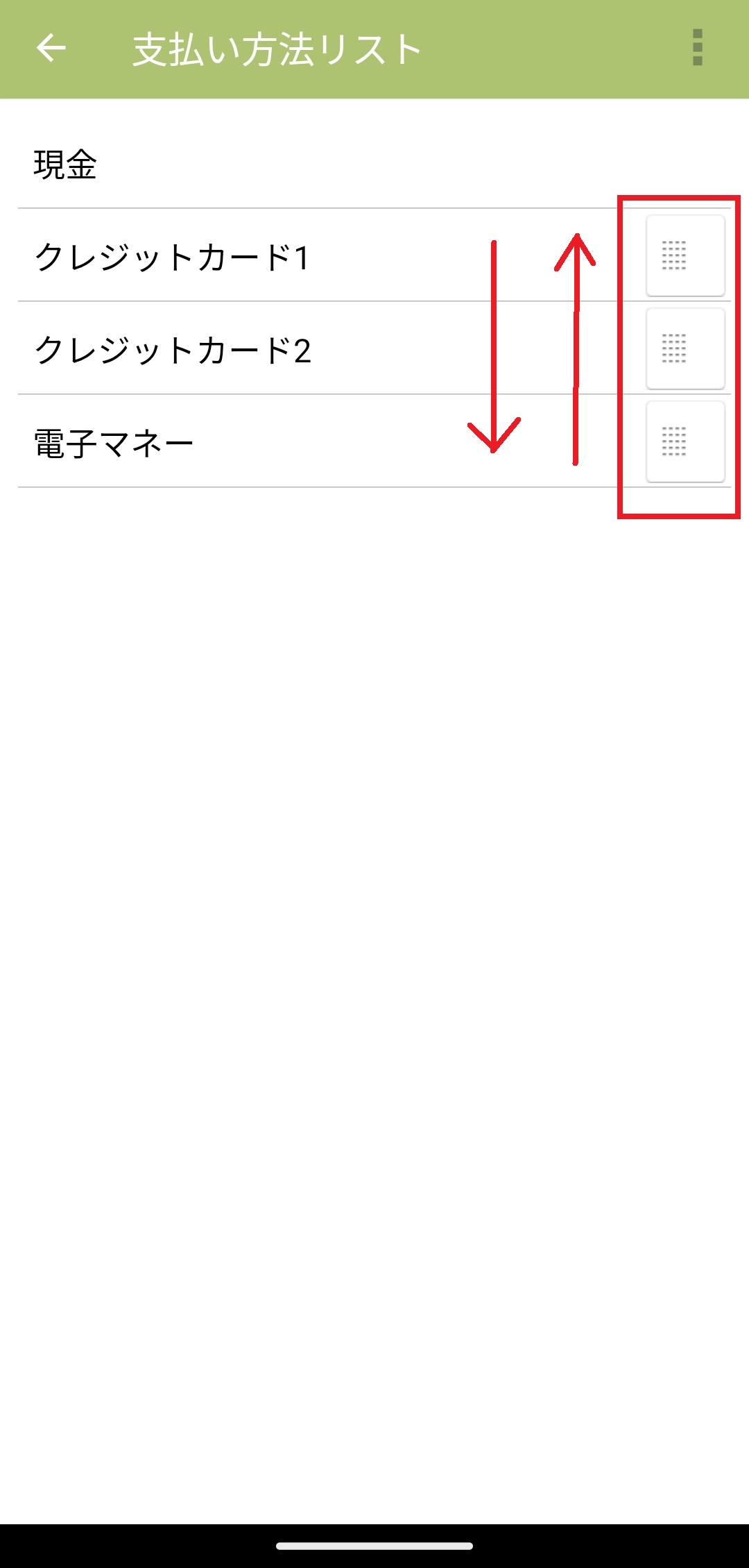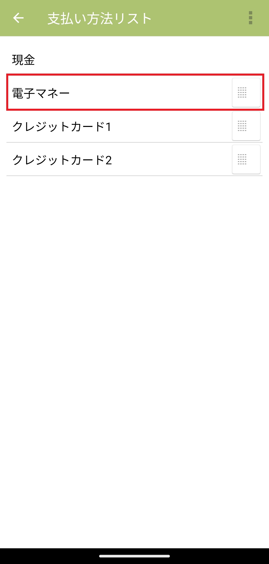6. 支払い方法名の右端に三本線が表示されます。移動したい支払い方法名右端の三本線を押します。