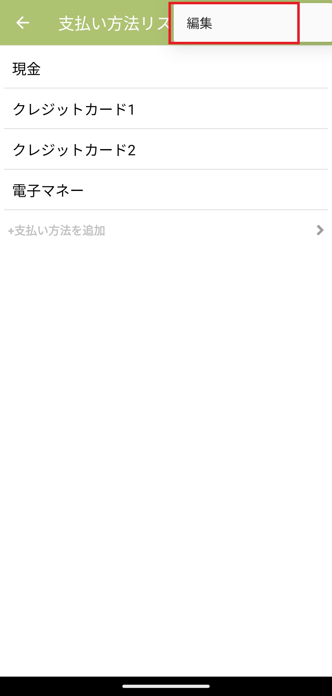 5. 画面右上の「:」を押し、「編集」ボタンを押します。