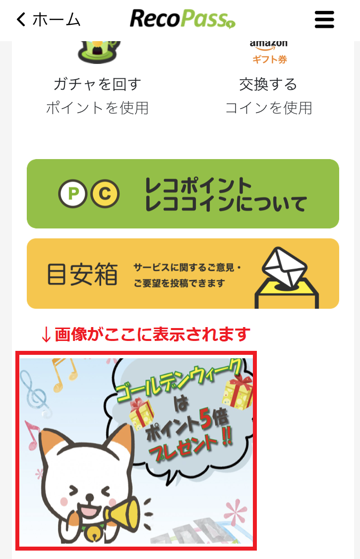 ※下記は例です。今回は、レココインの画像が表示されます。