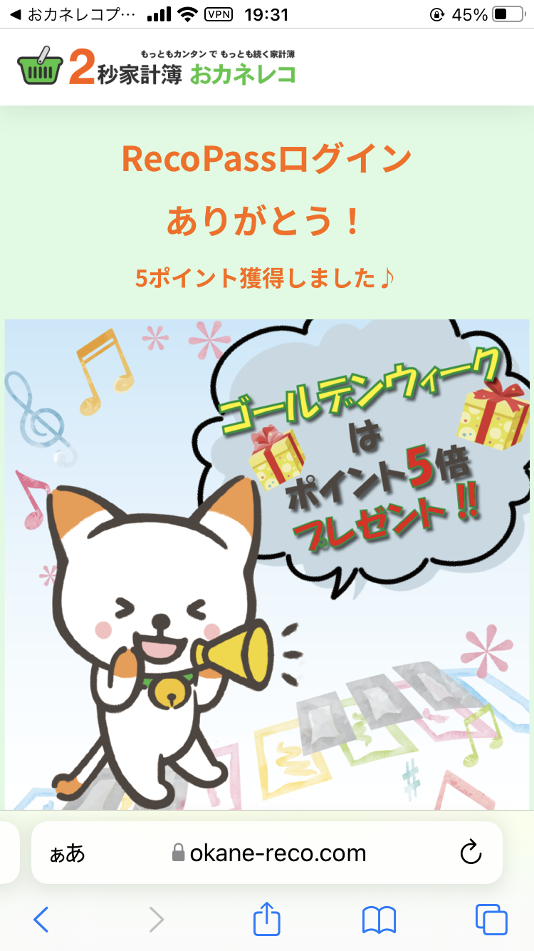 3.画像を押していただくと、レココイン獲得画面が表示されます。