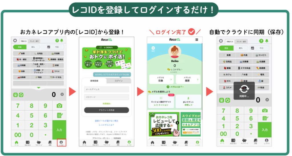 → おカネレコ自体はオフラインでも使えますが、クラウド同期はレコIDを作成し、ログインが必要です。