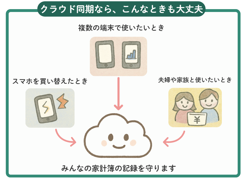 おカネレコのクラウド同期は、あなたの“がんばり”をそっと守ってくれる仕組みです。